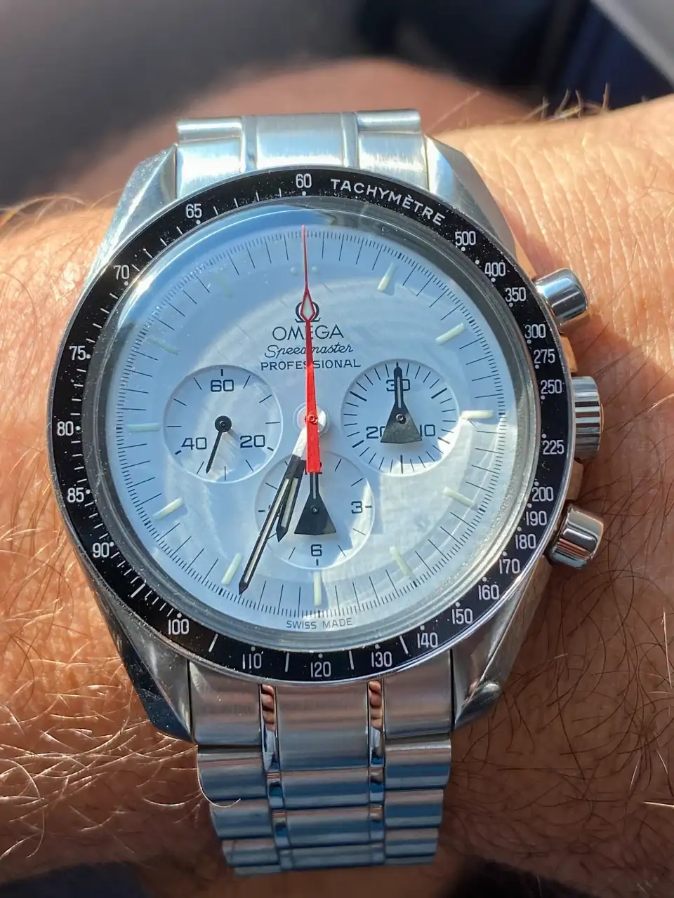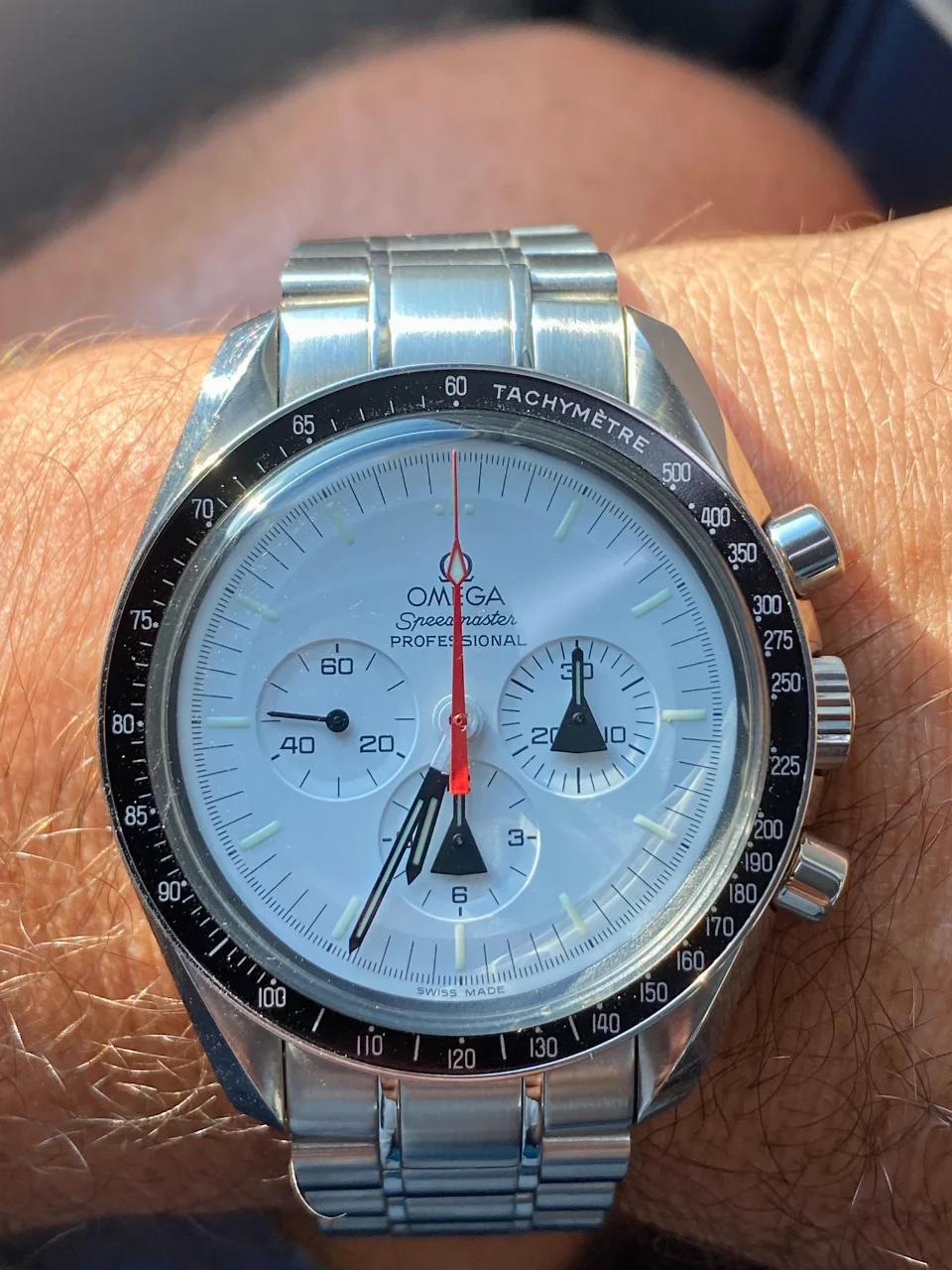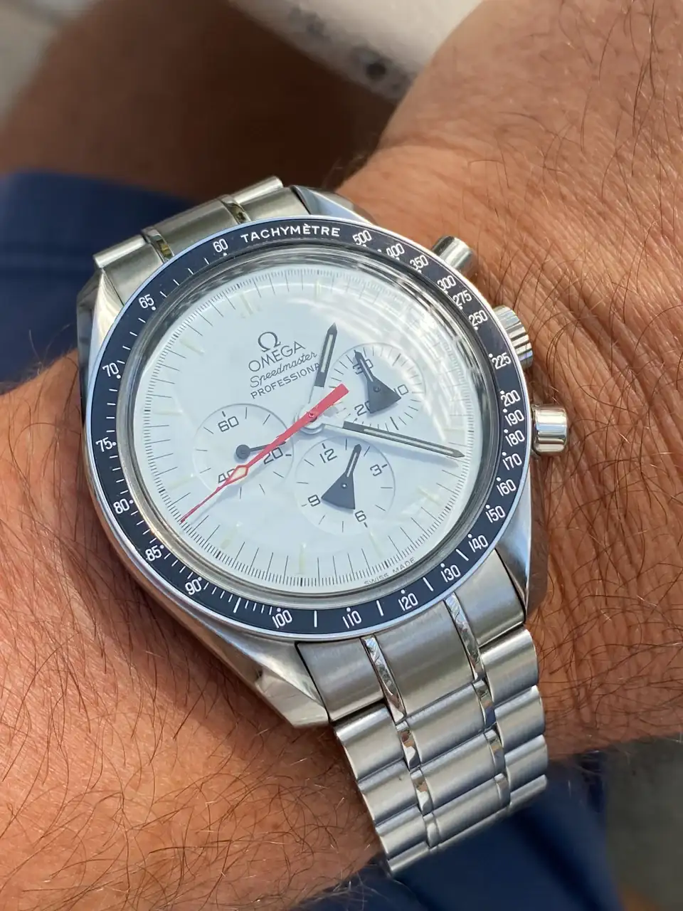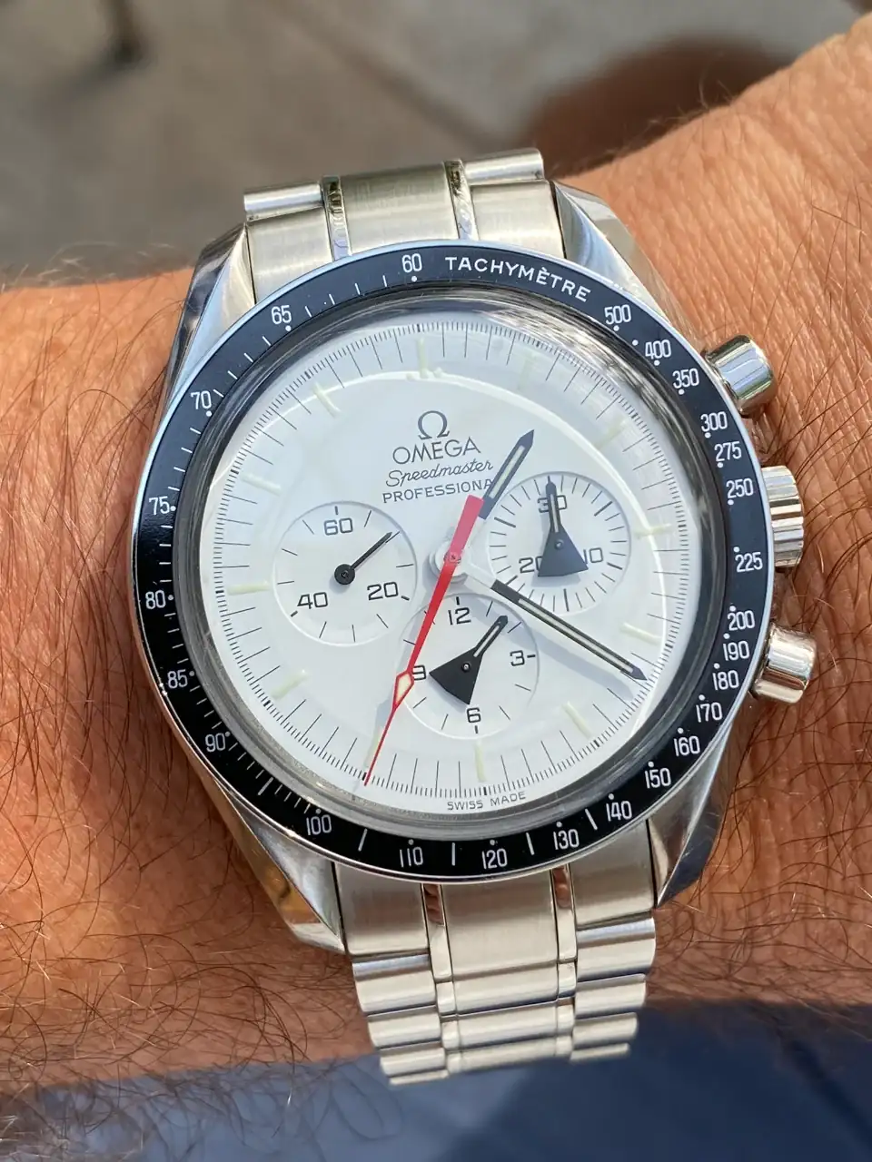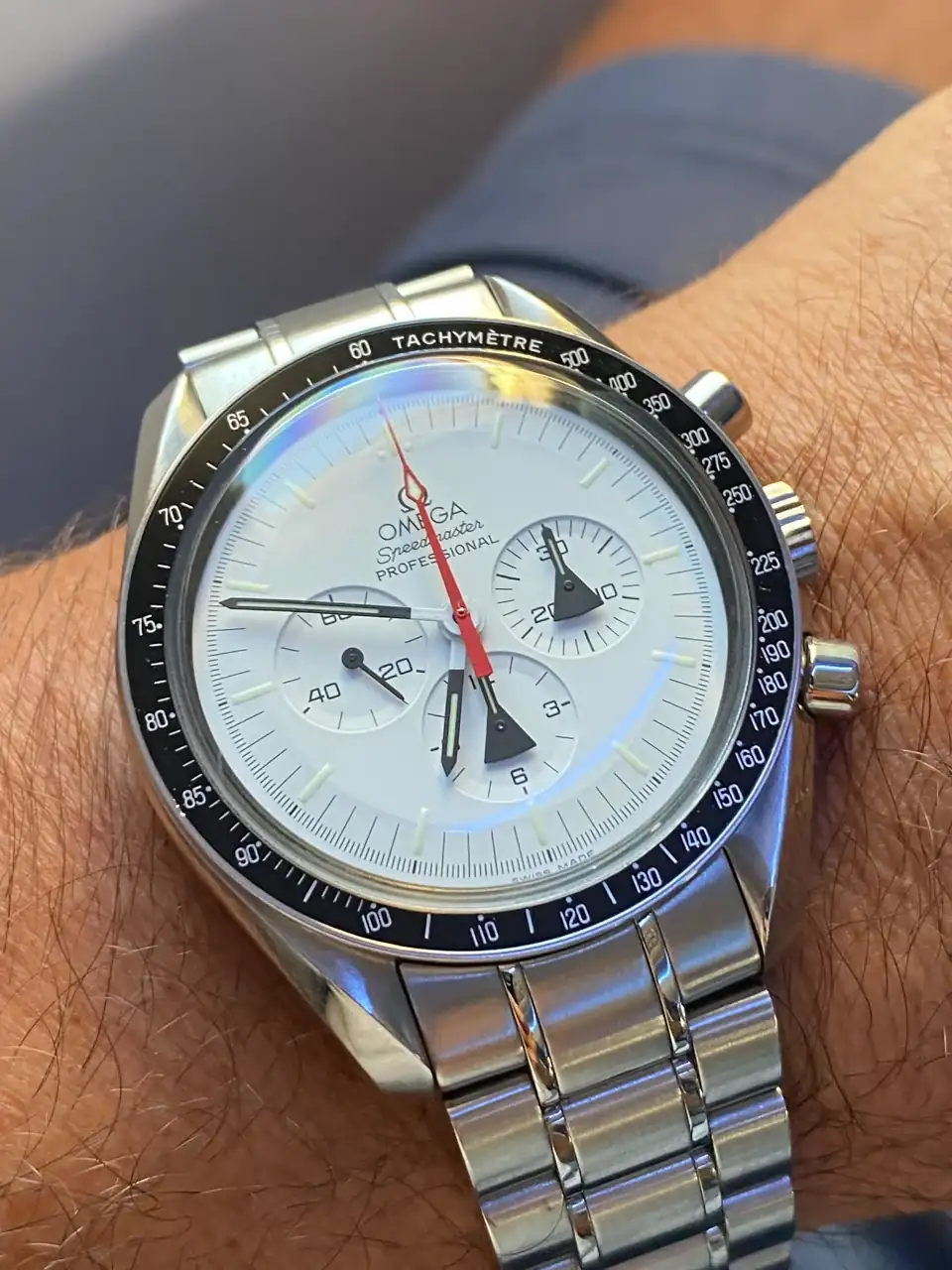 Tras llevar mucho tiempo pensando en poder añadir algún Speedmaster en blanco a la colección, realmente pocos eran blancos puros, realmente blancos. El Alaska Project era el más blanco de todos hasta la fecha, y el que más me ha gustado desde siempre, así que llevaba mucho tiempo pensando en tener uno pero, viendo la locura de los precios que han alcanzado últimamente en el mercado, aparqué la idea hasta ver si bajaban. Tras la reciente salida del nuevo Speedmaster Moonwatch Professional con dial blanco, consideré realmente comprar uno en lugar del Alaska Project, pues también es muy bonito y considerablemente más barato. Pero, tras mucho pensarlo, desestimé la idea: El Alaska Project me sigue pareciendo mucho más bonito, más blanco, y sobre todo más especial que el nuevo Speedy en blanco, que además no es una edición limitada. Así que seguí con mi búsqueda.