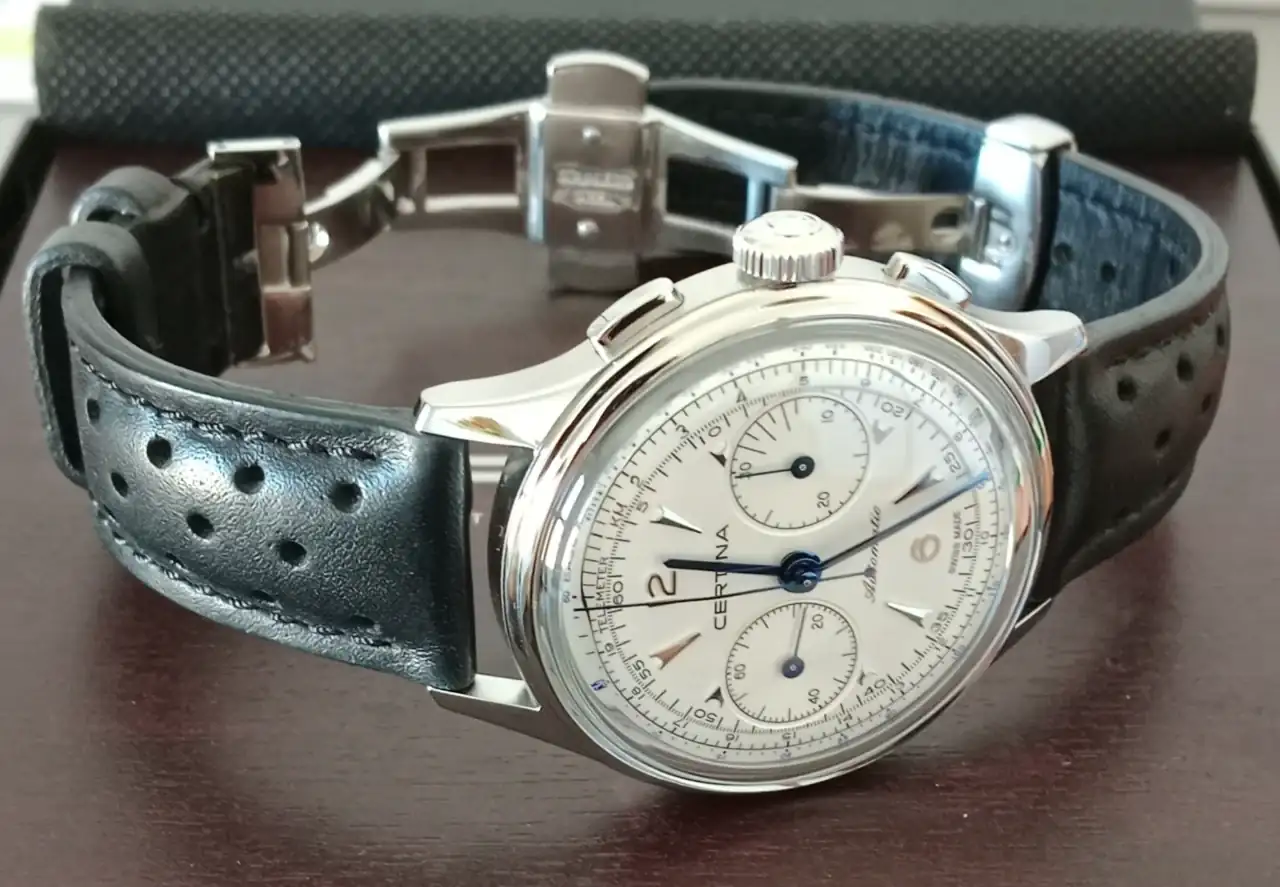 Es una verdadera pena no tener esa correa disponible en Certina. Es de 20 y no fabrican 21. Al estar cerrada con mariposa era bastante seguro quitar o poner el reloj. No había riesgo de que se cayera al suelo.