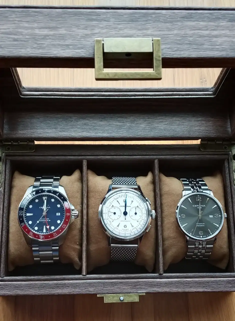Os dejo foto de la caja. Los tengo a los 3 "vestidos" con correas metálicas ( joe, estoy empezando a ser amigo de ellas, son cómodas ...) para que quede la presentación más uniforme 😂