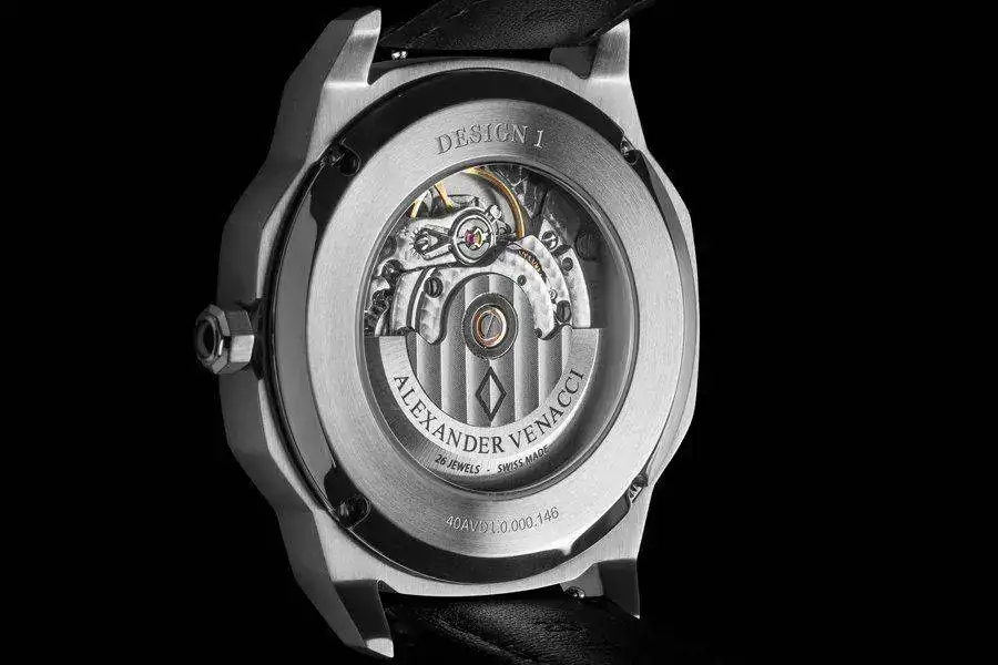 Tienen un modelo, el Design 1, en dos tamaños, 36 y 40mm. Es éste, con esfera blanca o negra, caja de acero o pvd dorado, con múltiples opciones por lo que respecta la correa (milanesa, becerro, piel girada, perlon).