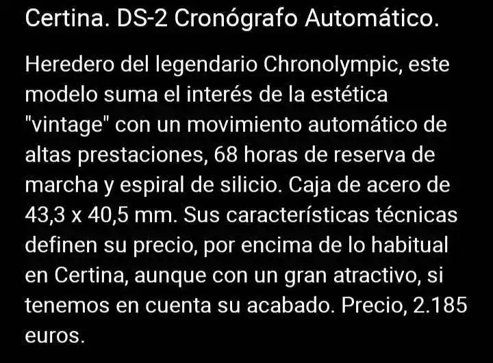 Buenas tardes moz@s, subo este nuevo modelo que seguro que más de uno no ha visto aún, para que tengáis información de nuevo certina crono...