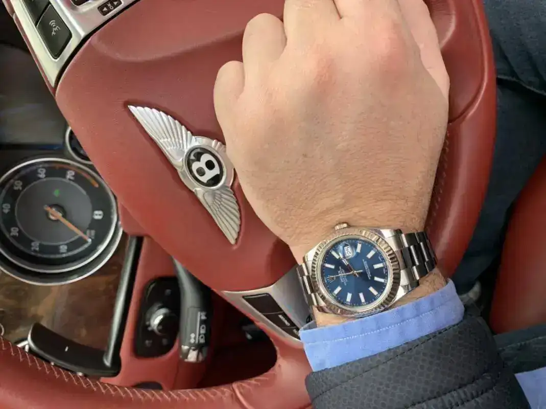 Si el volante del mío fuera el mismo, yo tampoco me lo quitaría. El coche digo.Pues yo tengo la suerte de poder poseer varios, pero desde que me compre el Datejust azul es que no me lo quito, me veo bien con traje, me veo bien con bañador o shorts ... me acompaña en todo!