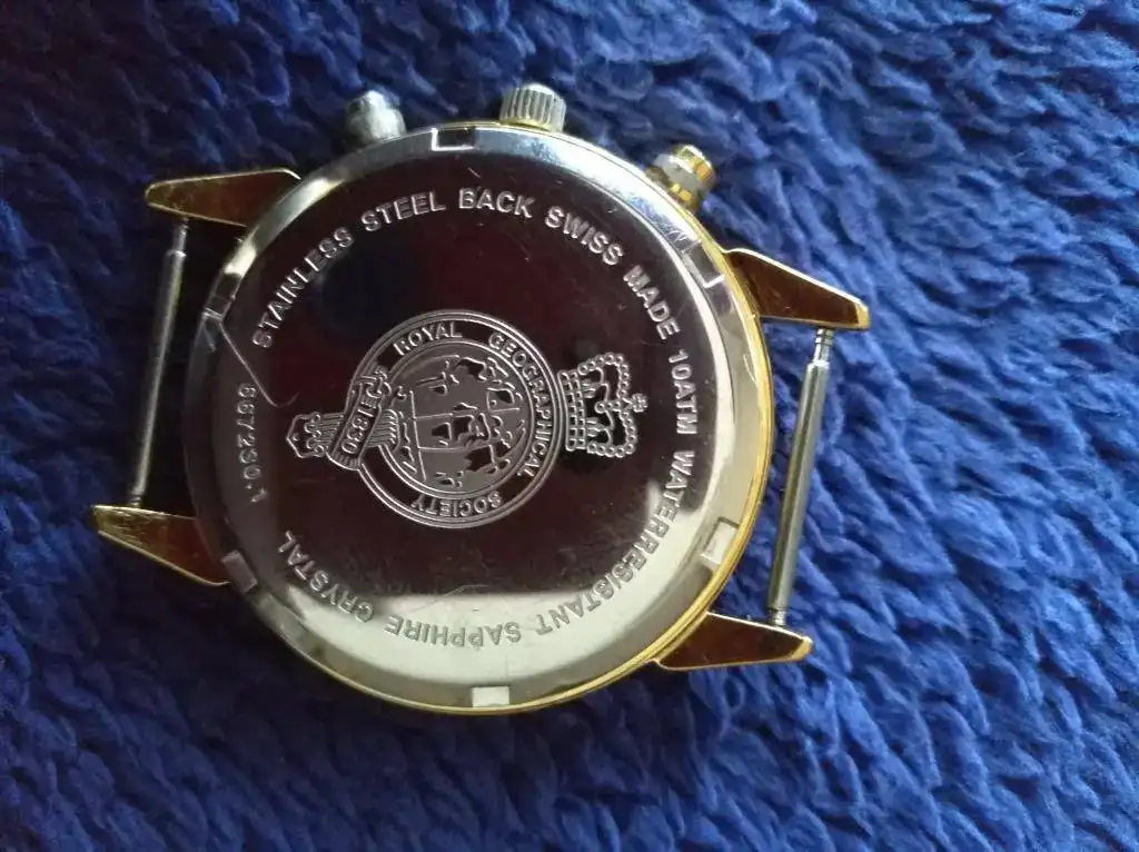 Buenas, el otro día recibí este reloj por parte de un familiar, supuestamente es del fabricante suizo "Delma" y es una edición limitada para la royal geographical society o eso es lo poco que he podido averiguar sobre el, tiene un movimiento de cuarzo de 22 jewels y cristal de zafiro, me lo dieron con una especie de armis elastico pero estoy casi seguro que no era el original por lo que se lo quite para las fotos. Siento mucho que la descripción sea tan pobre y agradecería mucho si alguien sabe algo acerca de el, gracias.