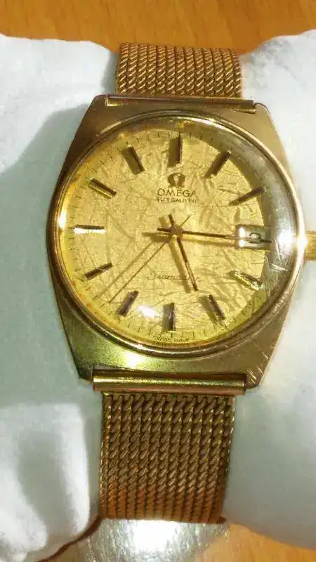 Se trata de un reloj de mi padre, heredado de mi abuelo, comprado allá por los 70 (creo...). Es un Omega Seamaster Atomático con milanesa, todo en oro, pero desconozco el modelo y referencia exactos. Alguno de vosotros tiene alguna idea??