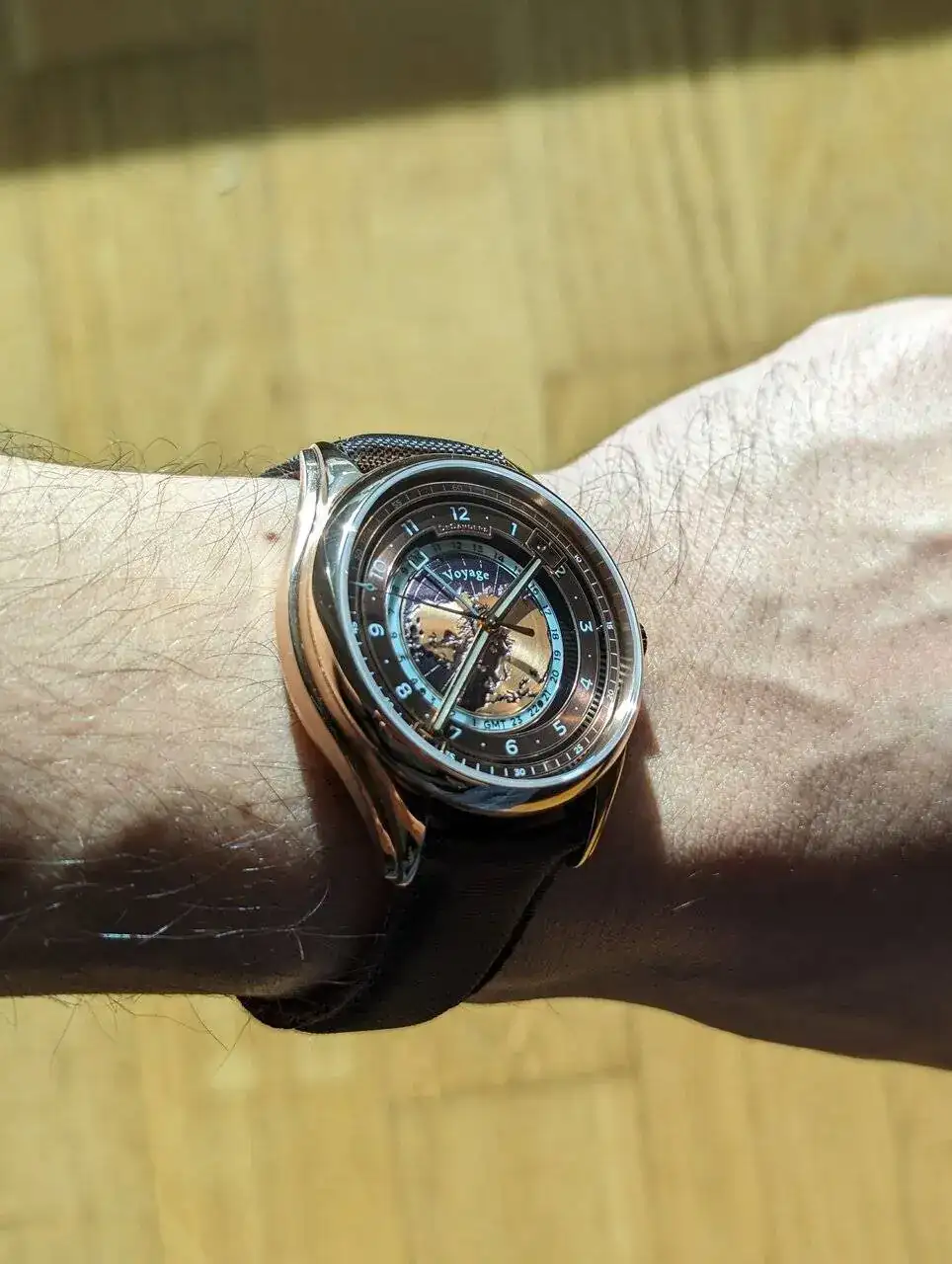 Edición especial limitada del Voyage, estilo pirata. con DLC, madreperla negra en la esfera del GMT y mapa pirata con calavera, y barquito pirata en mano del GMT, bastante chulo la verdad. El original ya de por si es muy guapo, pero este me gusta más al ser menos serio. Los 14mm no casaban del todo con el estilo de vestir, pero con este lo veo.