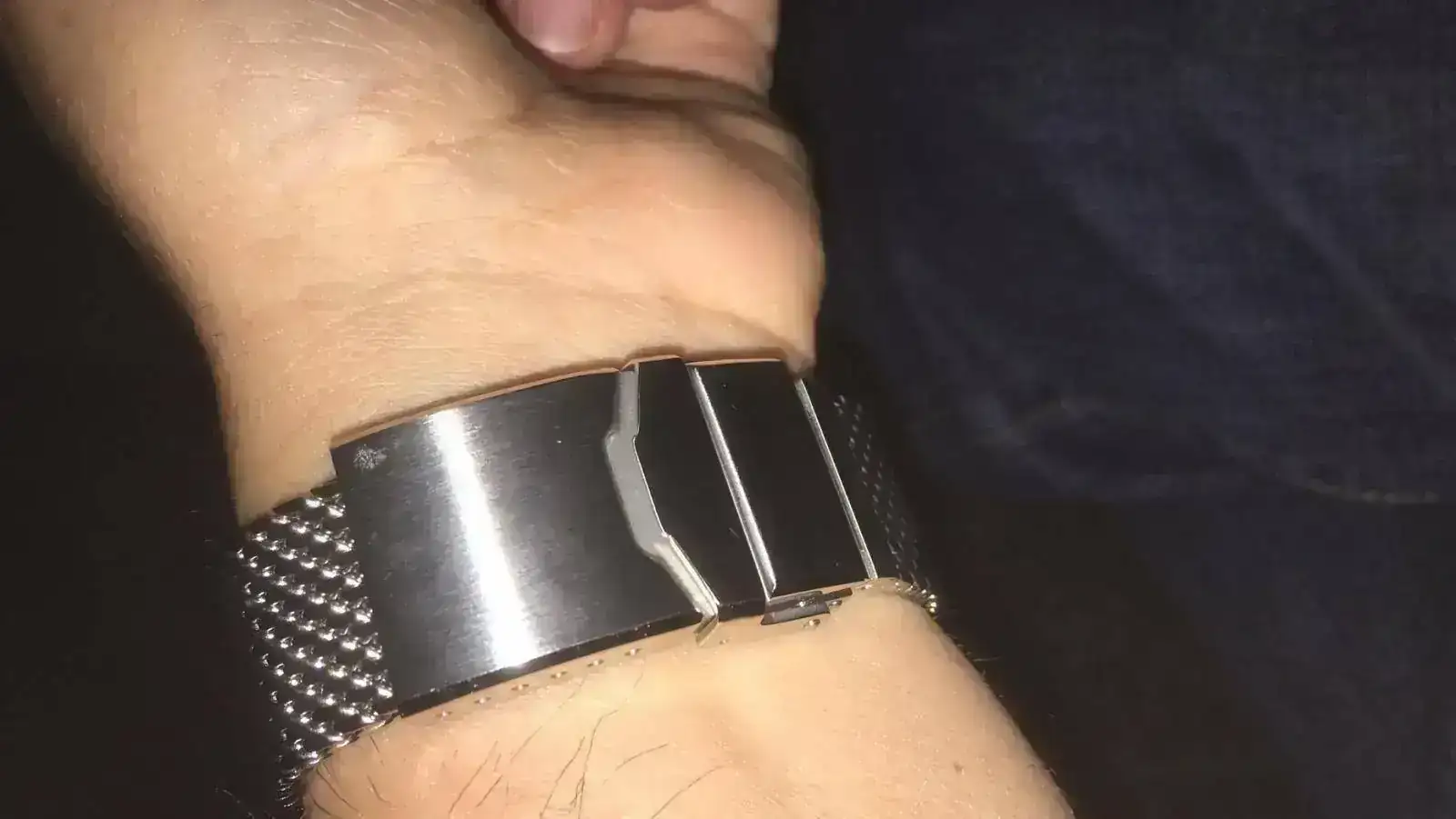 La milanesa es robusta , de unos 4mm de grosor que parece idónea para la caja ( ya de por si alta del MM ) terminada pulida que también casa con el pulido de las asas , caja y pulido del bisel visto lateralmente.