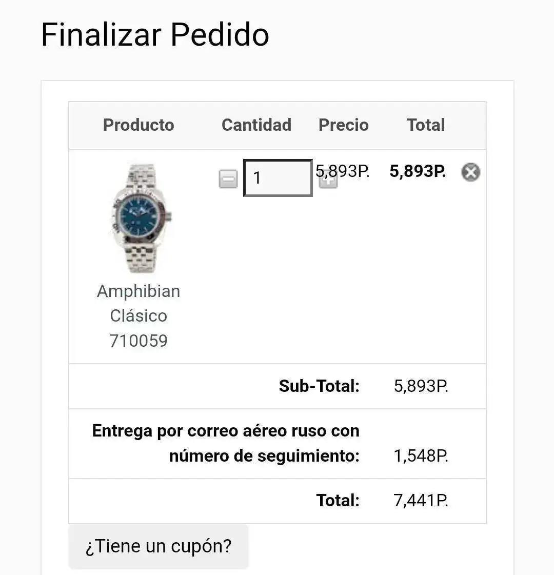 La otra duda principal antes de comprarlo viene del precio, que al añadir al carrito el reloj me pone una moneda representada por una P, y no tengo nada claro que moneda es, para hacer la conversión y saber cuánto sería en euros.