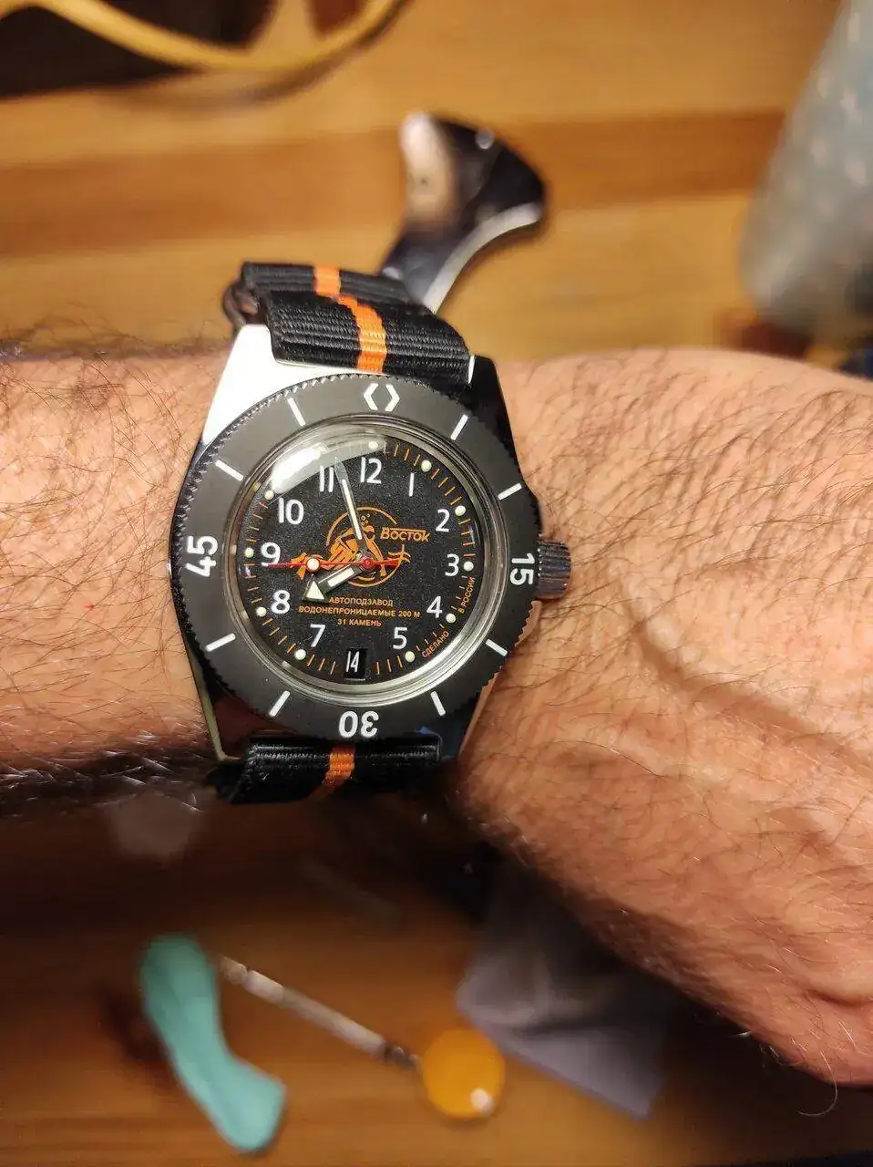 Hola compañero, te muestro un ruso con la misma caja que muestras, la 710 , para que te hagas una idea de como queda, tengo 17.5 de muñeca.