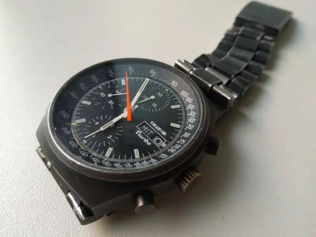 Hace unas semanas adquirí éste cronógrafo con inscripción "924 Turbo", clara referencia al automóvil de la marca Porsche.