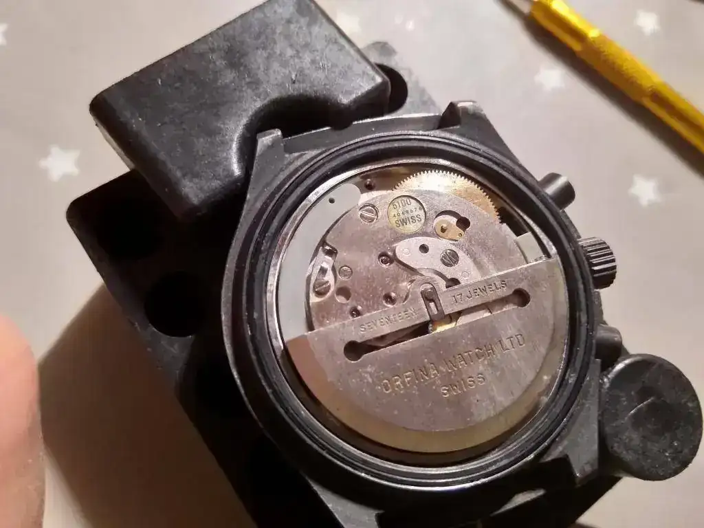 Pero tengo serias dudas que sea un producto "oficial" Porsche. El movimiento es un Valjoux 7750 y según el vendedor es de 1979.