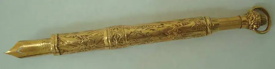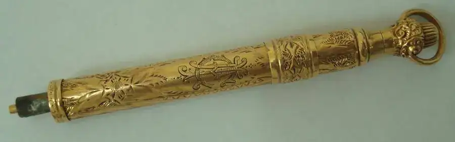 Canutero-Lapicero, 13cmts de largo, oro de 18k., aparentemente siglo XIX