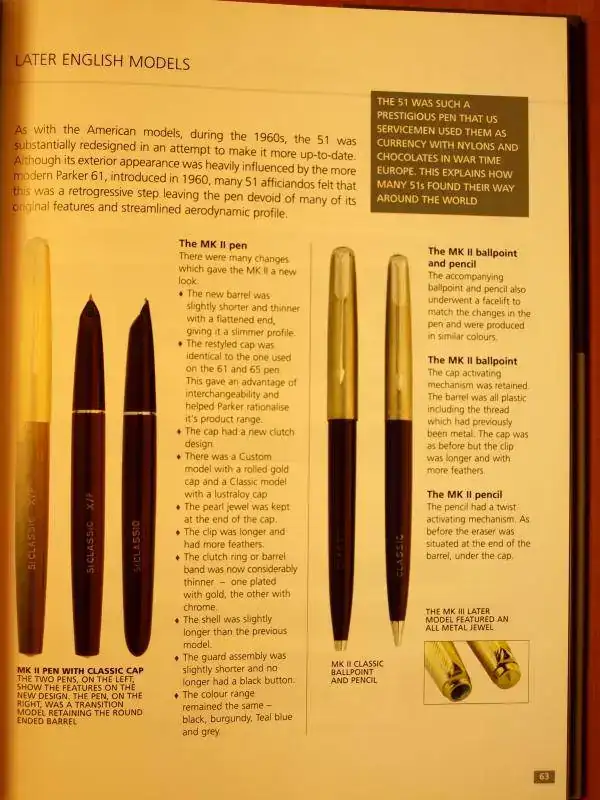 Pues creo que lo has dejado claro claro. Esto es como en los lenguages de programación que unos empiezan a numerar las listas en cero y otros en uno. Lo mejor es que los señores de Parker nuncan usaron esta nomenclatura para denominar los modelos de 51.Hola otra vez. No sé si lo estaré interpretando bien, pero deduzco que la diferencia entre unos autores y otros es que unos empiezan llamando mkI a las vacumatic, y otros empiezan con esa nomenclatura, mkI con las aerométricas. Con esto estaría claro el desfase, pues unos llegan a la mk IV y otros se quedan en la mkIII. Es decir, las vacumatic son las vacumatic, y a partir de las aerométricas empiezan a numerar I, II, III y IV. ¿Sería eso correcto o estoy equivocado?. Llevo tiempo con esta duda que me corroe, pero me deja dormir.