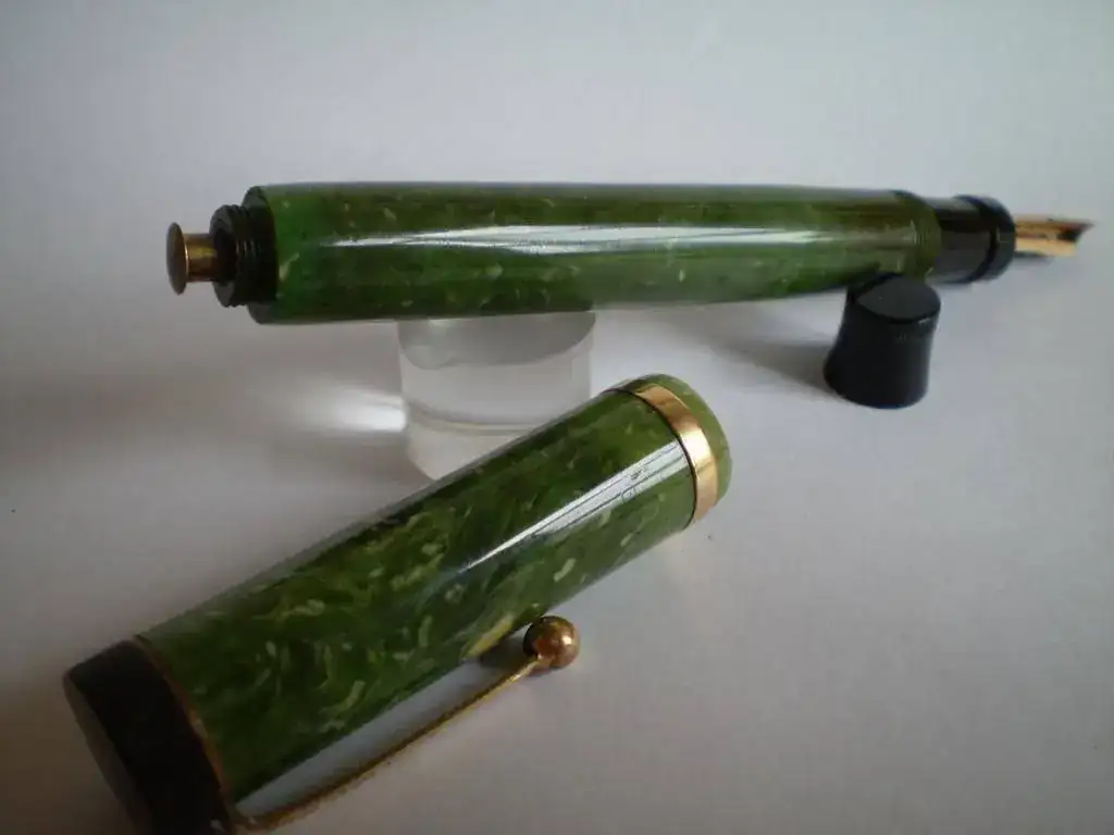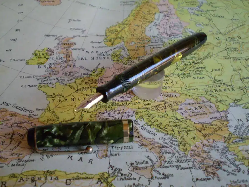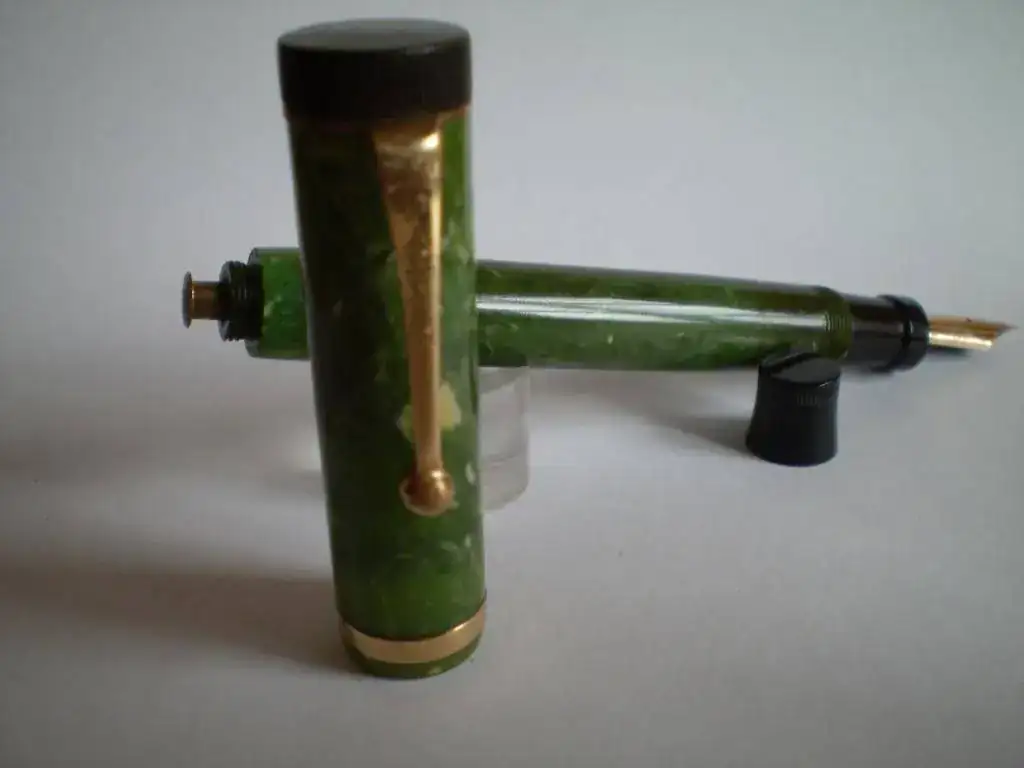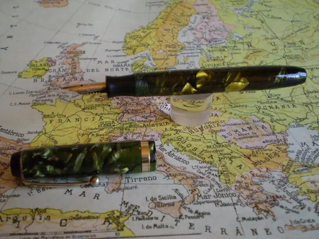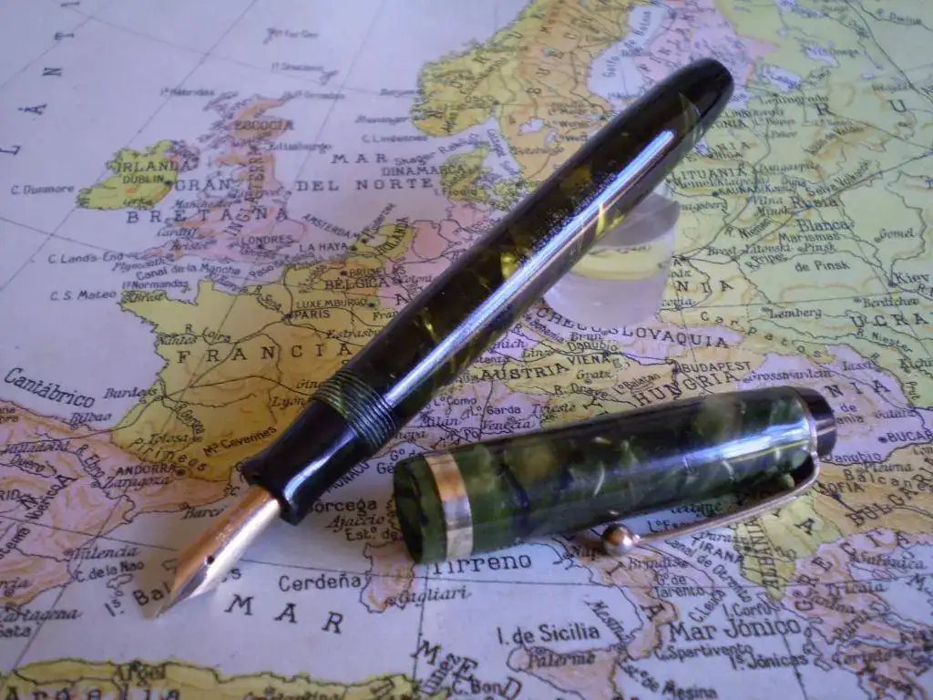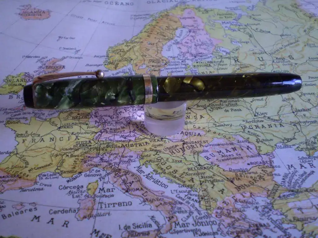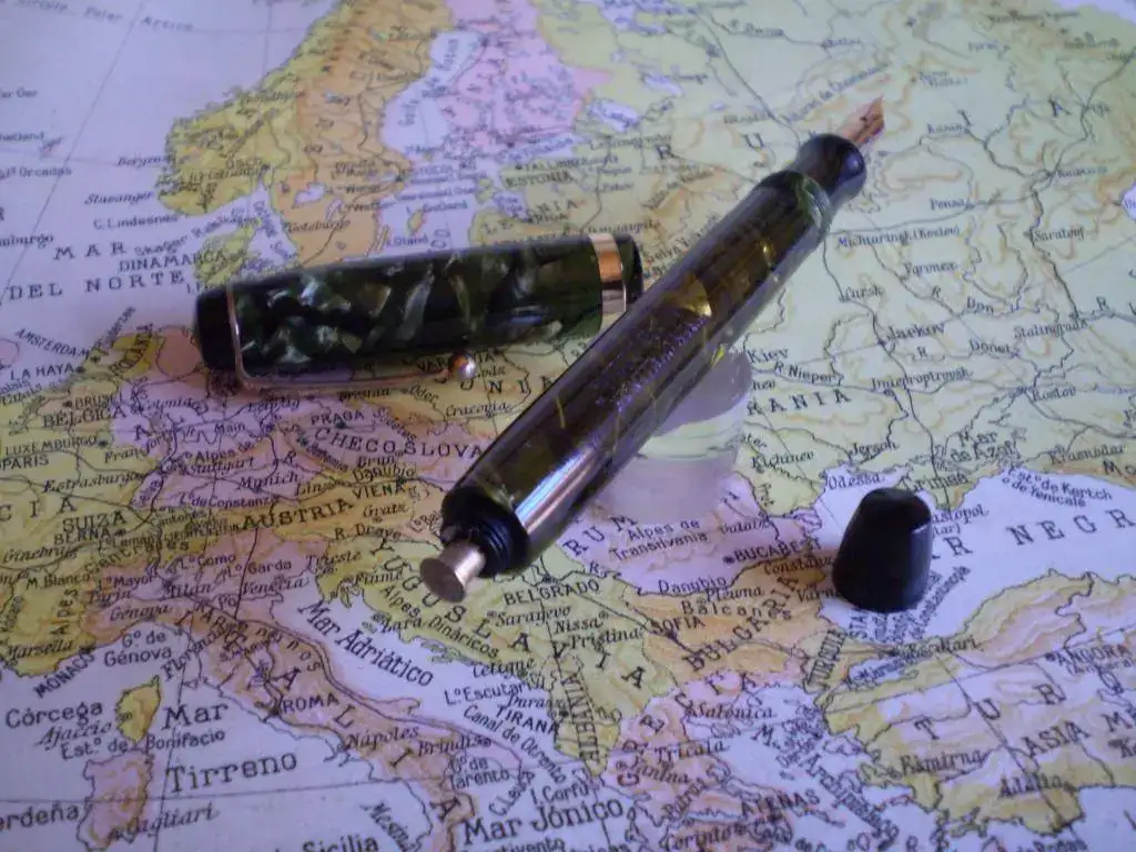 Buenas foreros, os quiero presentar algunas de las plumas Parker que tengo, dos 21, una Challenger y una Duofold Senior de 1927. Cada una de ellas tiene su historia: de alguna me la se, de otra me la imagino. Las Parker 21 han dado la vuelta al mundo varias veces porque son las plumas que usaba mi padre para escribir a mi madre cuando estaba embarcado, allá por los años 60. La verdad es que salvo los inevitables roces por el uso (no dejan de ser plástico inyectado bastante corrientito) y la deformidad que presenta la negra en la boquilla a causa de haber estado demasiado tiempo cerrada, están bastante bien conservadas. La Parker Challenger la adquirí hace ya algunos años en internet. Es una pluma que fue destinada en su origen al mercado de los estudiantes, era bastante económica (creo que andaba en torno a los 2,5$ allá poe 1934) y por tanto no tenía los mejores acabados de la marca en la época (aunque nada que ver con los que tienen otras modernas de la misma gama). Lo que me llamó la atención de esta estilográfica fue lo que encontré al desmontar el capuchón para proceder a limpiarlo, como veréis en las fotos que adjunto. Encontré un papelito cuidadosamente doblado en el interior del alojamiento del culote de la tapa, que al desdoblarlo, llevaba escrito en caligrafía infantil el nombre "Bob Smith", como si efectivamente esa pluma de estudiante hubiera pertenecido a uno que sintió la necesidad de dejar bien claro a quién pertenecía ese preciado objeto. ¿Fue un regalo, o bien se la compró tras mucho ahorrar? Quizá eso es lo que más me atrae de los objetos antiguos, la historia que pueden contar. En cuanto a la Duofold (pluma que para mí fue un fetiche desde que, siendo un crío, la marca la relanzó y quedé impactado por la foto del anuncio de prensa, en la que salía sobre la aleta de un coche antiguo), llegó a mi poder hace ya muchos años, regalo de la familia que me acogió un verano que estuve en Estados Unidos (junto con alguna otra). Fue propiedad del abuelo de quien me la dio, y su estado de conservación era excepcional, ya que apenas fue usada y se pasó casi toda su vida en un cajón (creo que ha envejecido más conmigo por haberla tenido en un expositor, a la luz, que en los 60 años anteriores). Quizá lo podáis apreciar en las fotos, los únicos desperfectos que presentaba eran unas terribles rallas en la base del plumín y una marca feísima en el alimentador, como si alguien hubiera intentado quitar el plumín con unos alicates, a lo bestia. Que es exactamente lo que ocurrió, según me contó quien me la regaló. Al parecer durante los años 30, en plena Gran Depresión el Gobierno de Estados Unidos hizo una petición a la ciudadanía para que aportasen el oro que pudieran al Tesoro Nacional, y por lo visto, el tío de quien me la dio, un crío entonces, en su afán patriótico, armado con unas tenazas y una sierra estuvo a punto de colaborar con el Gobierno Federal a costa de despuntar la pluma que su padre nunca usaba. Lo que, según me contaron le valió algún que otro azote al chaval cuando le pillaron en plena tarea, cosa que es de agradecer. De otro modo nunca hubiera llegado hasta nuestros días. Espero que os gusten, ya me diréis lo que os parecen, tanto las plumas como las historias que las acompañan, un saludo a todos.