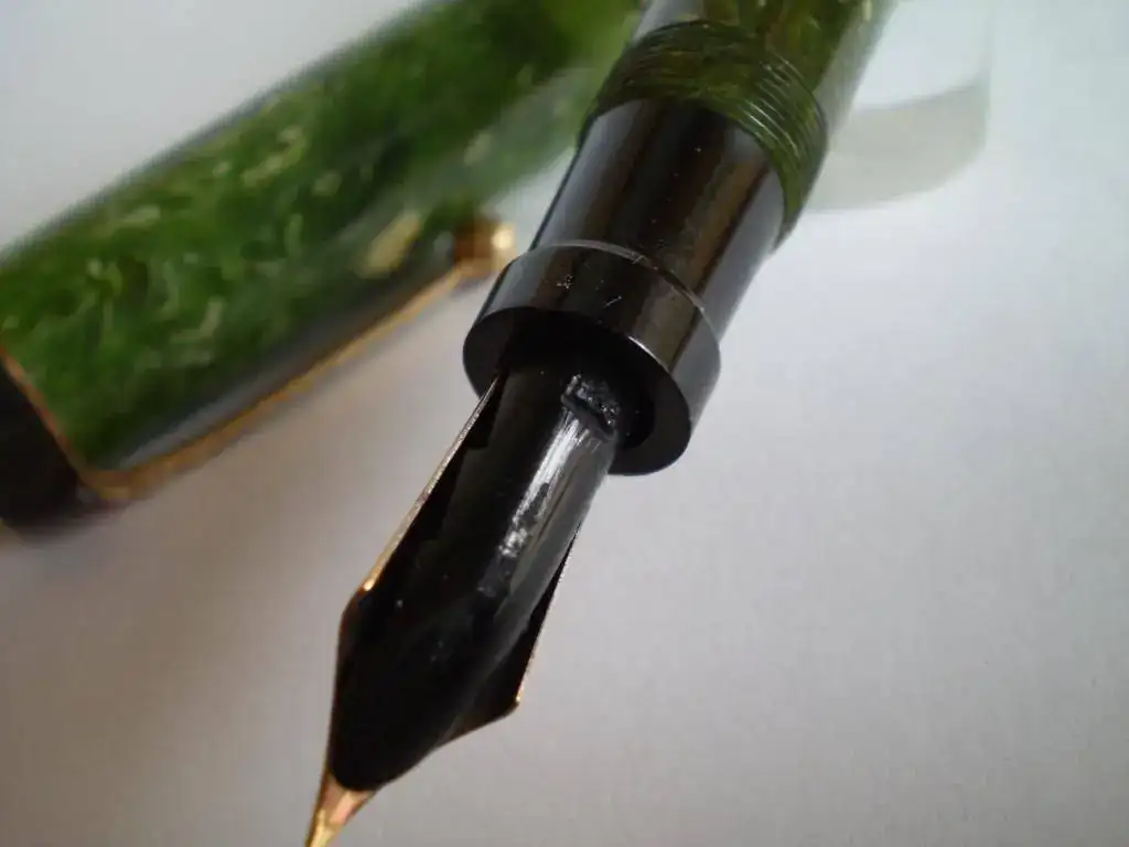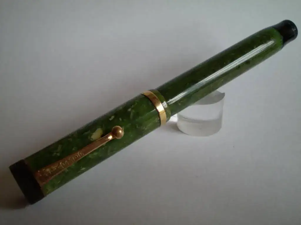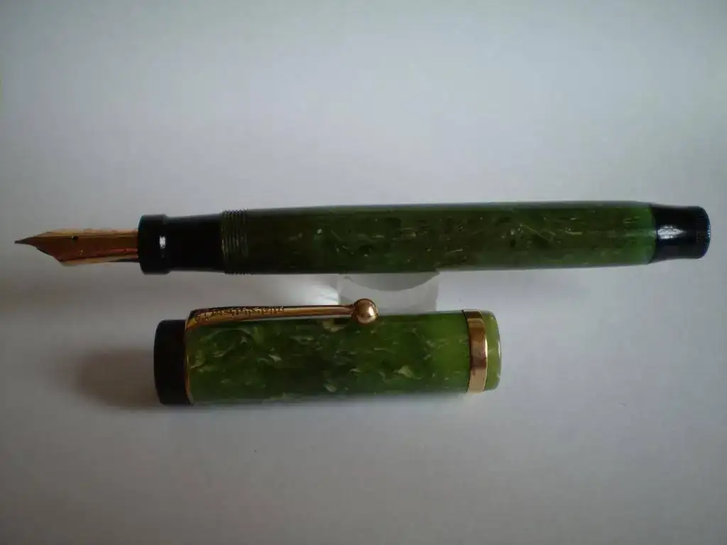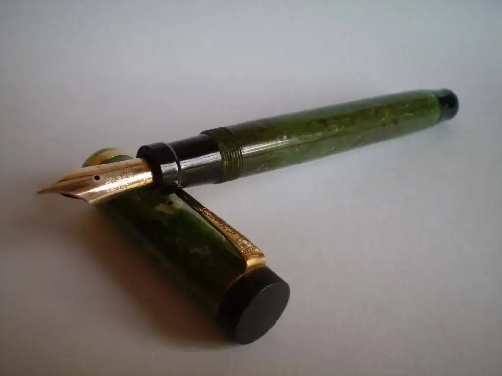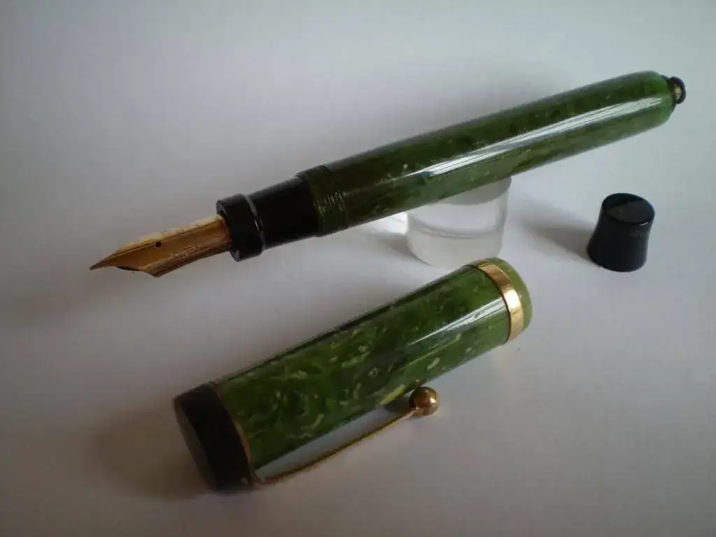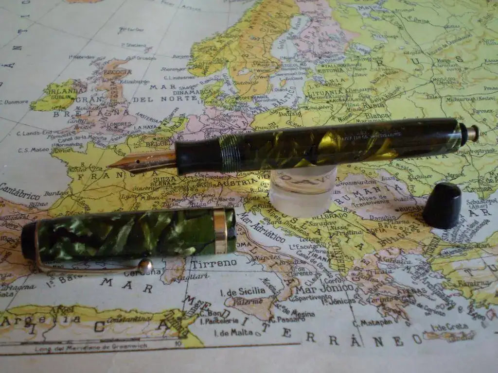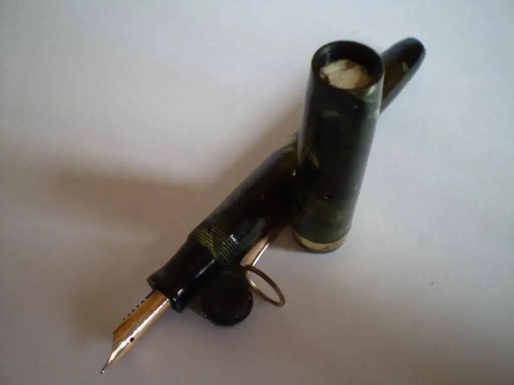 Buenas foreros, os quiero presentar algunas de las plumas Parker que tengo, dos 21, una Challenger y una Duofold Senior de 1927. Cada una de ellas tiene su historia: de alguna me la se, de otra me la imagino. Las Parker 21 han dado la vuelta al mundo varias veces porque son las plumas que usaba mi padre para escribir a mi madre cuando estaba embarcado, allá por los años 60. La verdad es que salvo los inevitables roces por el uso (no dejan de ser plástico inyectado bastante corrientito) y la deformidad que presenta la negra en la boquilla a causa de haber estado demasiado tiempo cerrada, están bastante bien conservadas. La Parker Challenger la adquirí hace ya algunos años en internet. Es una pluma que fue destinada en su origen al mercado de los estudiantes, era bastante económica (creo que andaba en torno a los 2,5$ allá poe 1934) y por tanto no tenía los mejores acabados de la marca en la época (aunque nada que ver con los que tienen otras modernas de la misma gama). Lo que me llamó la atención de esta estilográfica fue lo que encontré al desmontar el capuchón para proceder a limpiarlo, como veréis en las fotos que adjunto. Encontré un papelito cuidadosamente doblado en el interior del alojamiento del culote de la tapa, que al desdoblarlo, llevaba escrito en caligrafía infantil el nombre "Bob Smith", como si efectivamente esa pluma de estudiante hubiera pertenecido a uno que sintió la necesidad de dejar bien claro a quién pertenecía ese preciado objeto. ¿Fue un regalo, o bien se la compró tras mucho ahorrar? Quizá eso es lo que más me atrae de los objetos antiguos, la historia que pueden contar. En cuanto a la Duofold (pluma que para mí fue un fetiche desde que, siendo un crío, la marca la relanzó y quedé impactado por la foto del anuncio de prensa, en la que salía sobre la aleta de un coche antiguo), llegó a mi poder hace ya muchos años, regalo de la familia que me acogió un verano que estuve en Estados Unidos (junto con alguna otra). Fue propiedad del abuelo de quien me la dio, y su estado de conservación era excepcional, ya que apenas fue usada y se pasó casi toda su vida en un cajón (creo que ha envejecido más conmigo por haberla tenido en un expositor, a la luz, que en los 60 años anteriores). Quizá lo podáis apreciar en las fotos, los únicos desperfectos que presentaba eran unas terribles rallas en la base del plumín y una marca feísima en el alimentador, como si alguien hubiera intentado quitar el plumín con unos alicates, a lo bestia. Que es exactamente lo que ocurrió, según me contó quien me la regaló. Al parecer durante los años 30, en plena Gran Depresión el Gobierno de Estados Unidos hizo una petición a la ciudadanía para que aportasen el oro que pudieran al Tesoro Nacional, y por lo visto, el tío de quien me la dio, un crío entonces, en su afán patriótico, armado con unas tenazas y una sierra estuvo a punto de colaborar con el Gobierno Federal a costa de despuntar la pluma que su padre nunca usaba. Lo que, según me contaron le valió algún que otro azote al chaval cuando le pillaron en plena tarea, cosa que es de agradecer. De otro modo nunca hubiera llegado hasta nuestros días. Espero que os gusten, ya me diréis lo que os parecen, tanto las plumas como las historias que las acompañan, un saludo a todos.