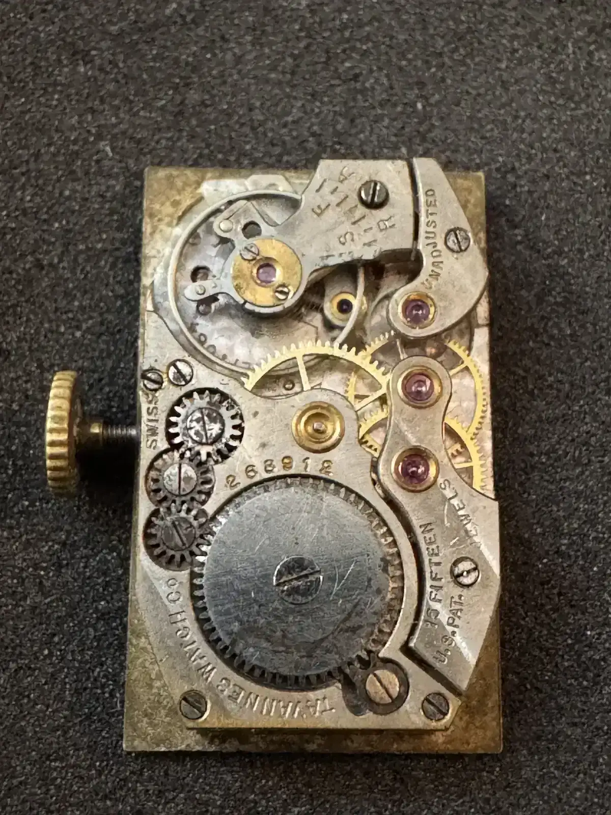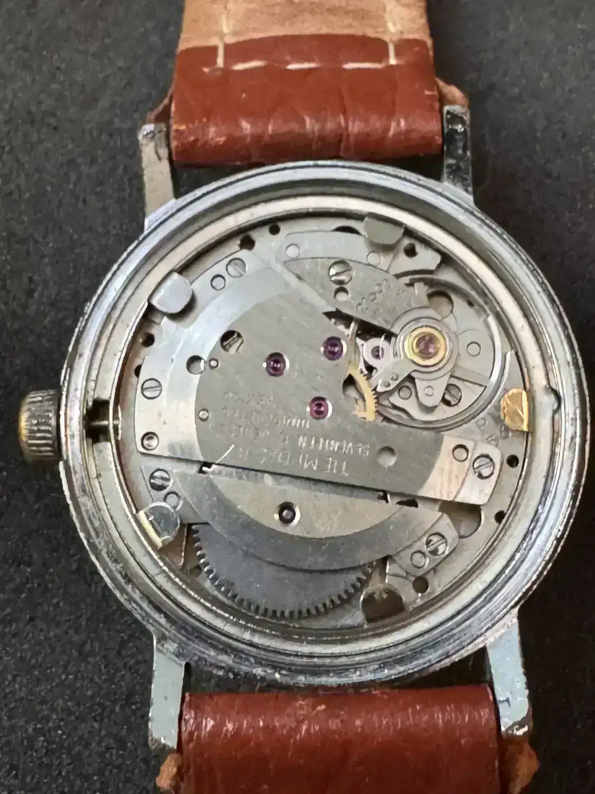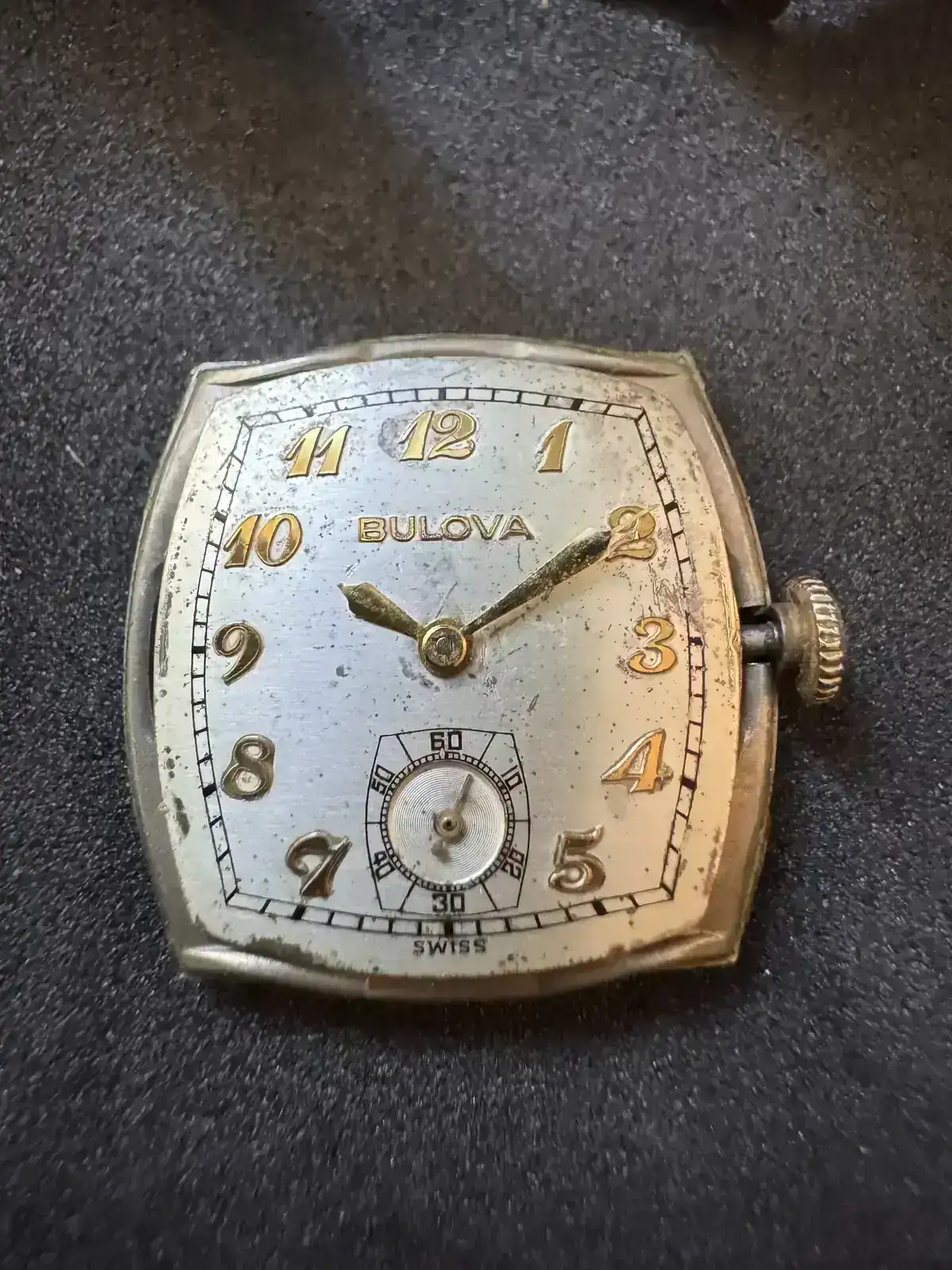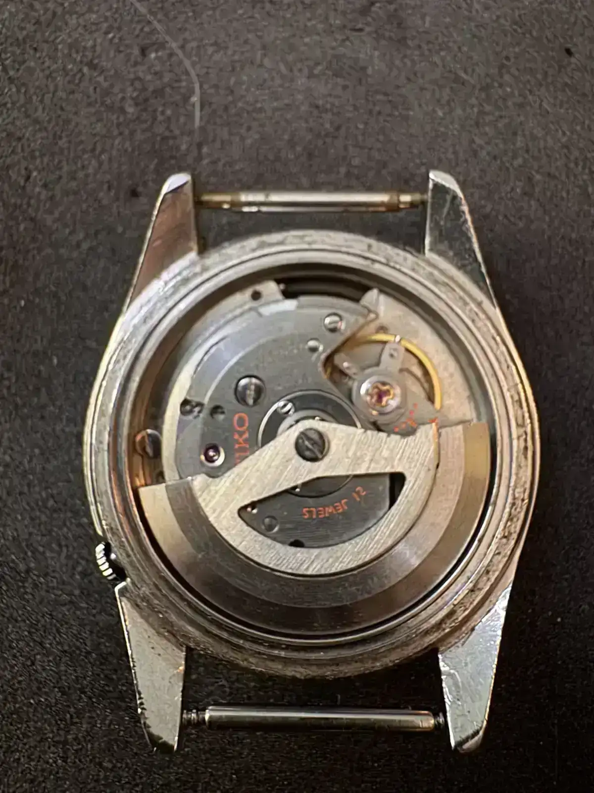 Este reloj fue adquirido en un lote de relojes para piezas, al llevarlo al relojero me indicó que estaba dañado el pivote del volante, lo conseguí y ahora ha vuelto a la vida.