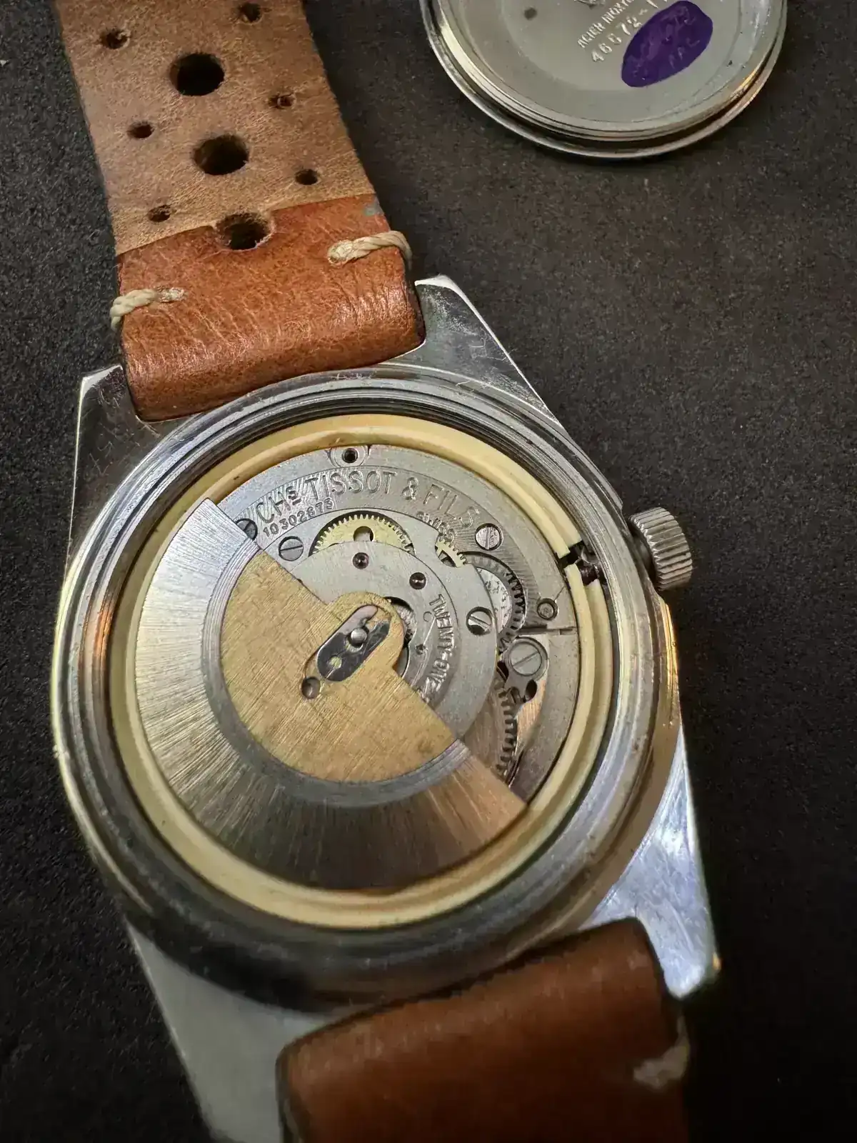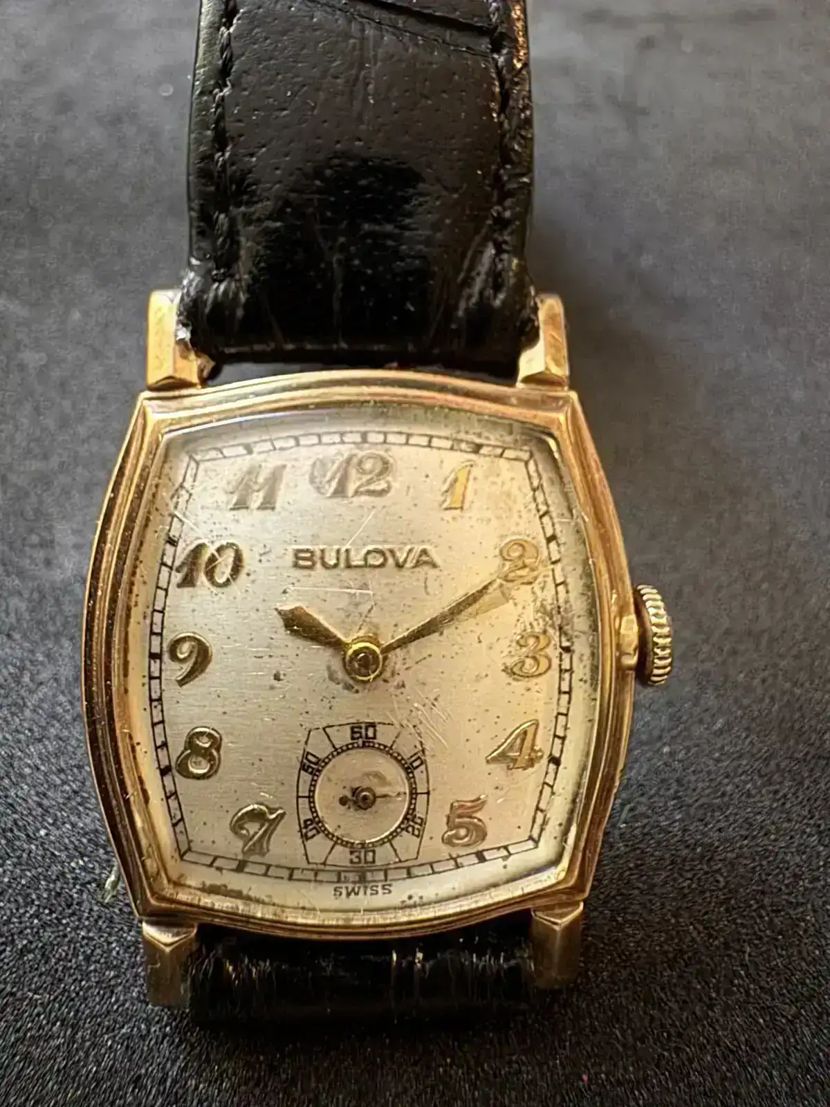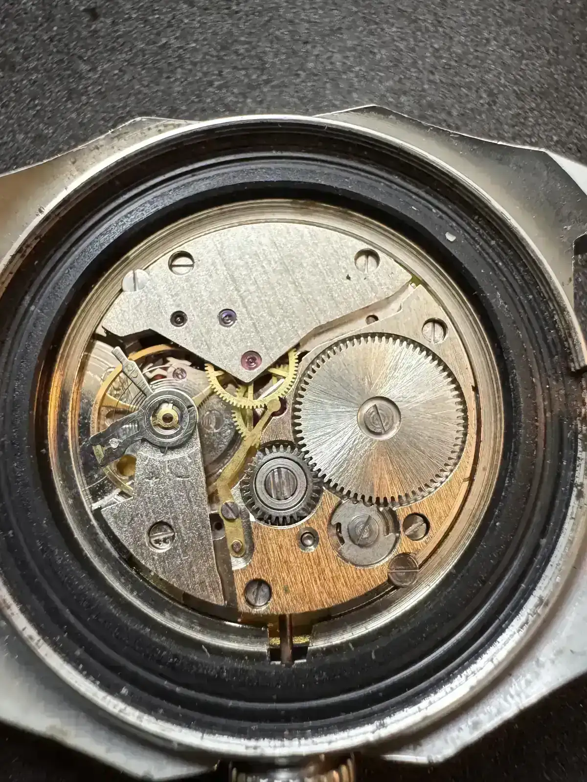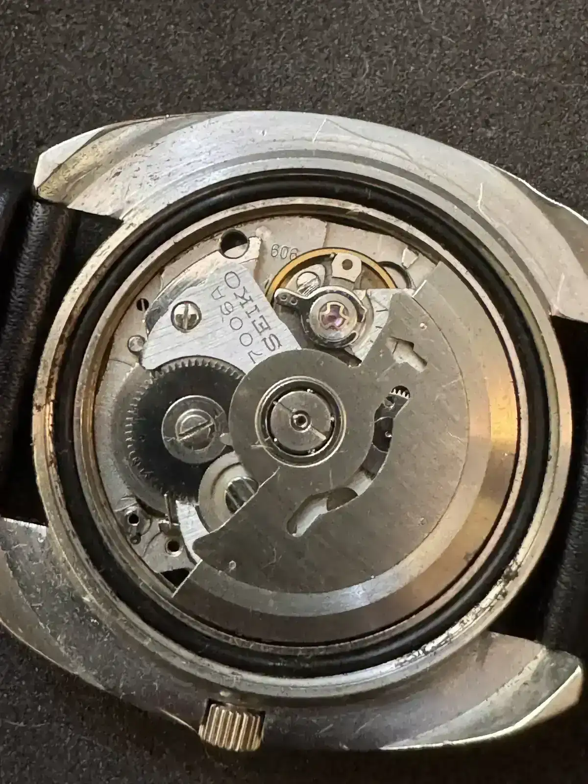 Este reloj fue adquirido en un lote de relojes para piezas, al llevarlo al relojero me indicó que estaba dañado el pivote del volante, lo conseguí y ahora ha vuelto a la vida.