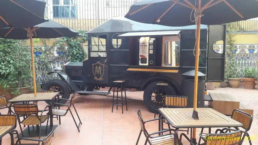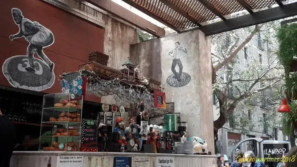 Mientras las chicas se escapaban de compras y para no causar agobio me di una vuelta por El Paseo de Gracia (no confundir con El Barrio de Gracia) y bajando hacia la plaza Cataluña, por la acera de la izquierda, reparé en una entrada con una verjas abiertas. Me dirigí hacia allí y lo que parecía un antiguo mercado lo habían convertido en una zona de bares y restaurantes. Me senté en uno que me pareció bonito y pedí un gin tonic de Gin Mare mientras hacía tiempo.