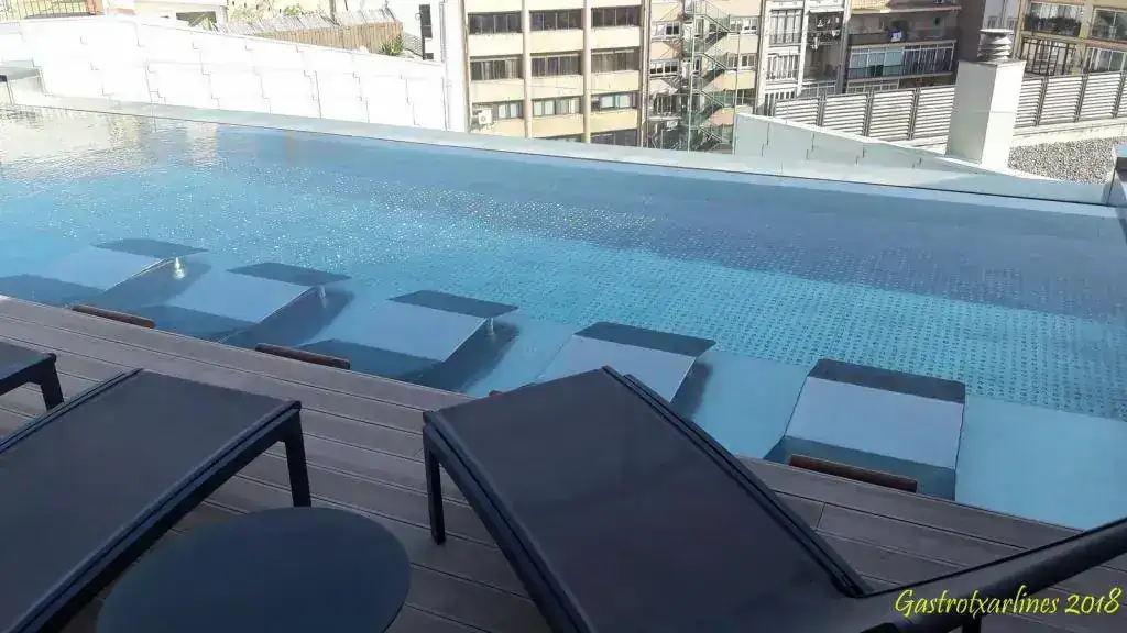 Mención aparte fue lo del hotel. Me pareció excepcional por, la situación, el trato y la información recibida, los detalles de la habitación botella de cava incluida, servicios con piscina y gimnasio en la azotea y, aunque las vistas no son las más deseadas (se encuentra en el centro de Barcelona y no es un edificio muy alto) fue ideal para relajarse sin ser los precios de la bebida nada abusivos.