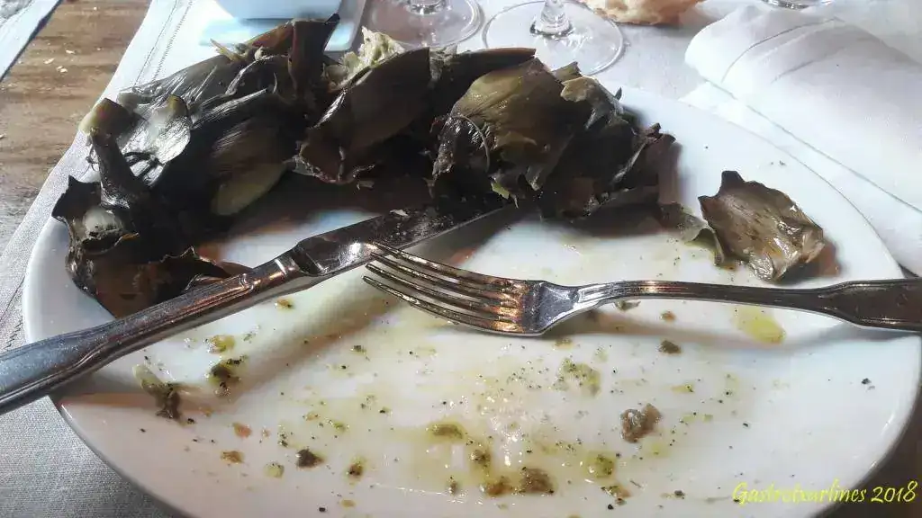 Lo de las alcachofas es para que se lo hagan mirar. No sé quién es ese cocinero/a pero... he comido cartones que estaban más tiernos. Por más que buscaba el blando de los corazones no llegaba a encontrarlo.