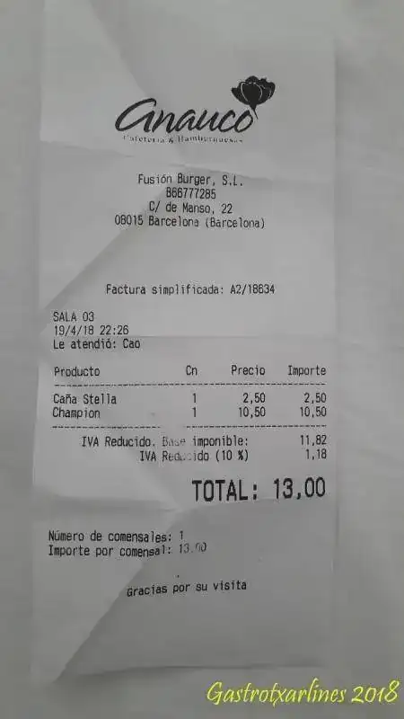 Hamburguesería ANAUCO. Situada en la calle de Manso, cerca de una zona de copas.
