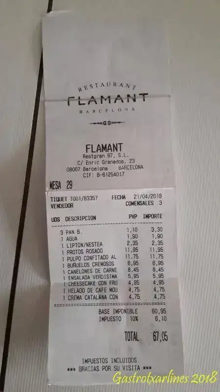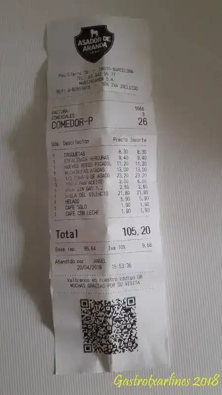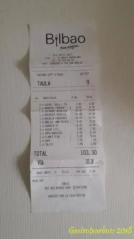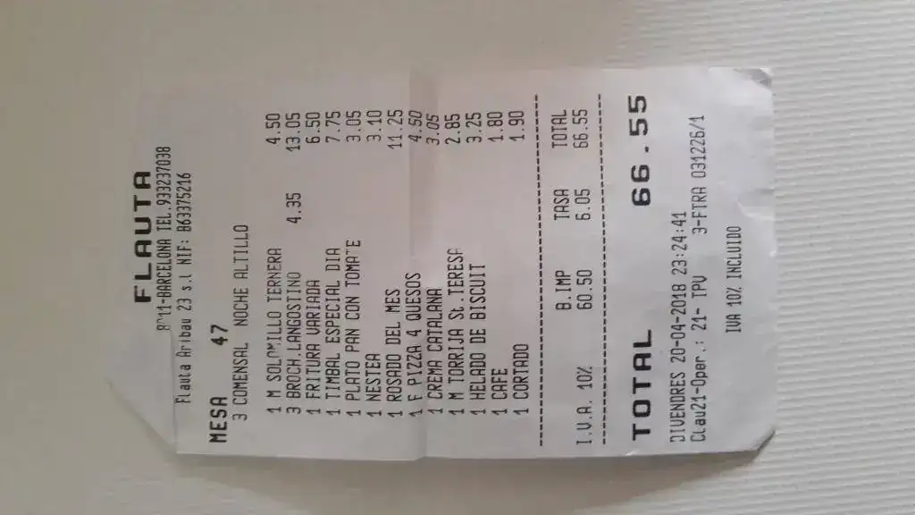 Estos platos son de la vez anterior pero para que os hagáis una idea de los precios os pongo la factura de esta última.