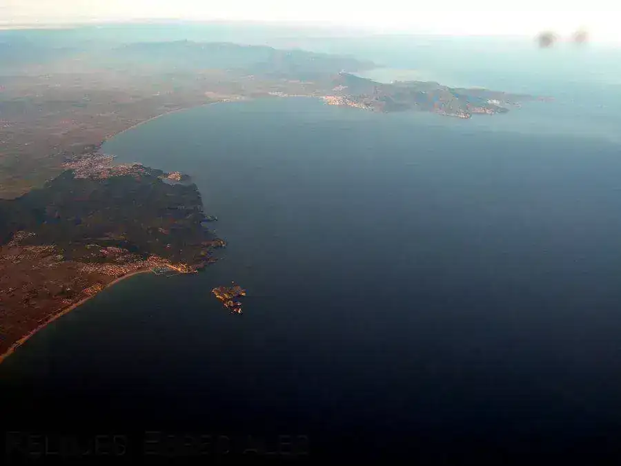 Un poco de geografía. Las islas Medas abajo, seguidas por la bahía de Rosas y el cabo de Creus ahí diluyéndose en la lontananza. Cadaqués está detrás.