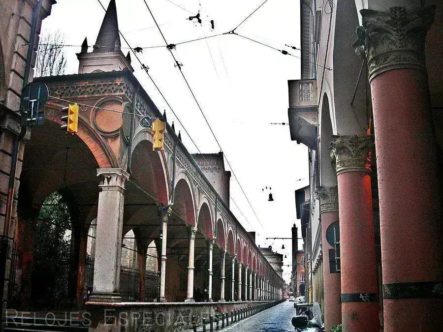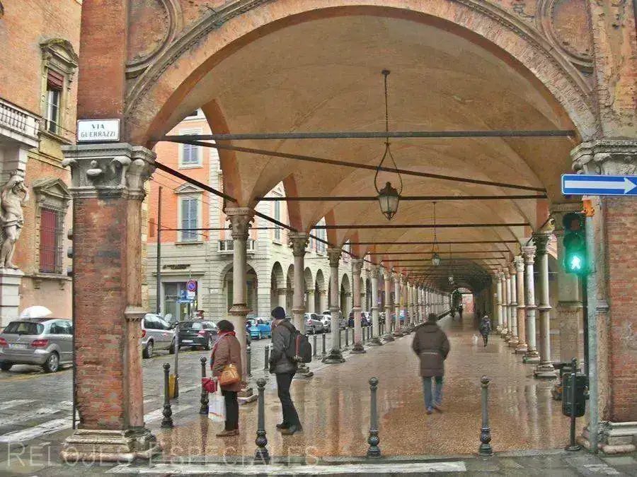 )Otra característica de Bolonia aparte de ser una sede universitaria de primer orden con bares (y bibliotecas) llenos de estudiantes de distintos países son sus casas porticadas. Hizo un día de perros con nevada incluida, pero gracias a los largos tramos cubiertos lo salvé con un mínimo de inconvenientes.