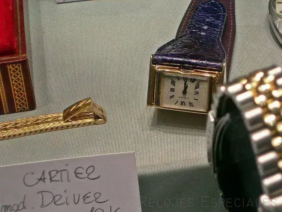 Me gustó también este para mí raro Cartier driver, con su característica esfera girada un cuarto (ver la posición de las doce o del logo, que aquí están al revés) y esa correa que a buen seguro el compañero Jacob sería capaz de reproducir al detalle...