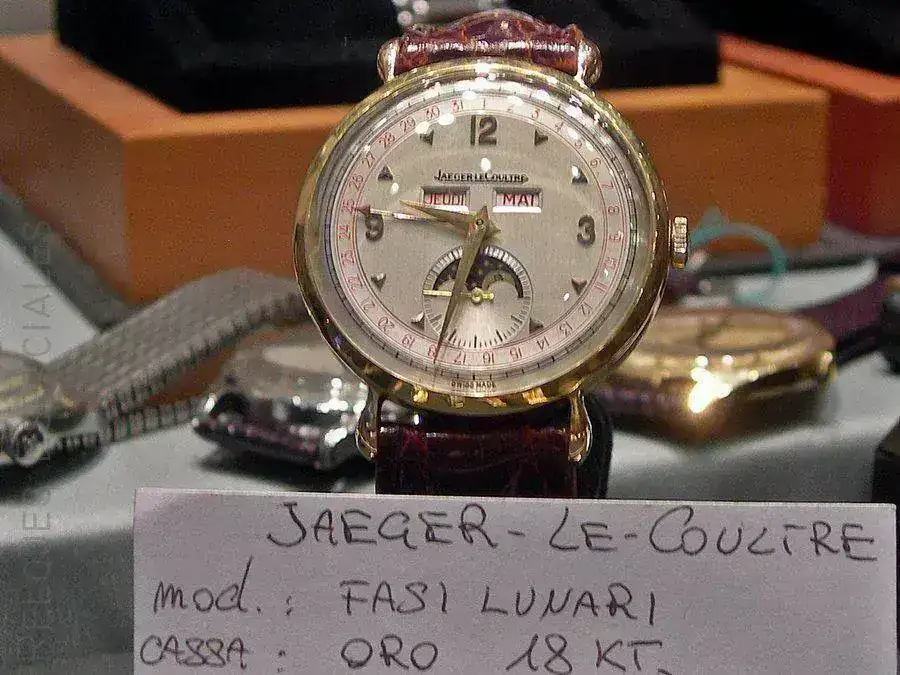 Otro Jaeger, con calendario completo y fases de luna. No se me ocurrió preguntar precios para no sufrir algún tipo de lipotimia, pero el aspecto que presentaban todos los relojes era mucho más que correcto. Por cierto, la propietaria de la tienda me invitó incluso a pasar dentro cuando le pedí permiso -por gestos- para tomar fotos del escaparate. Decliné, no fuera caso que me diera por preguntar