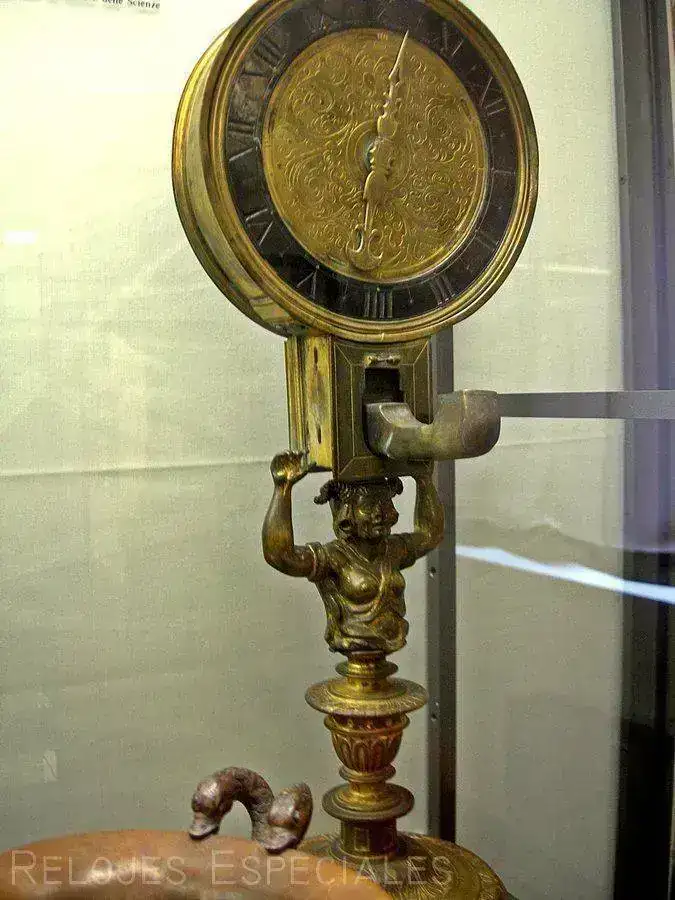 Aunque para antiguo este que vi en el museo medieval de la ciudad. Se trata de un reloj de una sola aguja con candil incorporado para poder ver la hora de noche. El candil es esa especie de grifo invertido que queda delante de la esfera de bronce con los índices inscritos en un aro de mármol. La nota al pie decía que era donación de un Papa. Tal vez lo que motivó al pontífice a hacer tal donación fue la efigie que sostiene el reloj mismo, que entre pechos y cuernos igual le quitaba el sueño