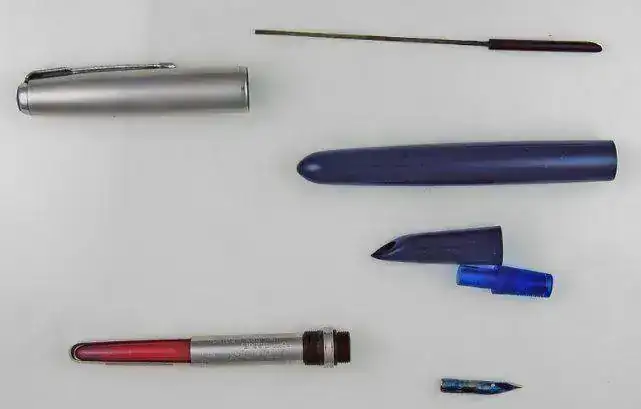 Tengo una Parker 51 aeromética tamaño standar, me gustaría saber si alguien sabe de algún sitio donde pueda comprar un alimentador junto con el tubito que llevan las parker 51, adjunto una foto, sería la pieza de la parte superior derecha. Sólo he encontrado el tubito suelto en ebay pero nada de las dos partes juntas
