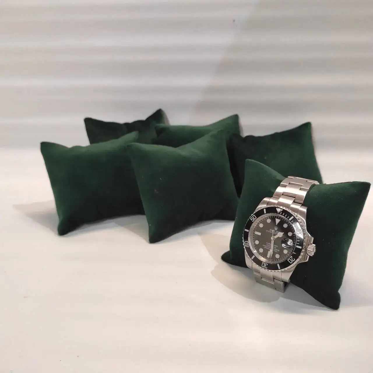 Buenas, el tema va de almacenaje, tengo una muñeca de 17,5 cm, me compre una caja y las almohadillas eran grandes para el brazalete, hace poco pedi en aliexpress unos bastantes mss pequeños, ahora si cierran, pero el reloj esta apretadisimo, no se mueve ni un pelo vamos muy apretado.