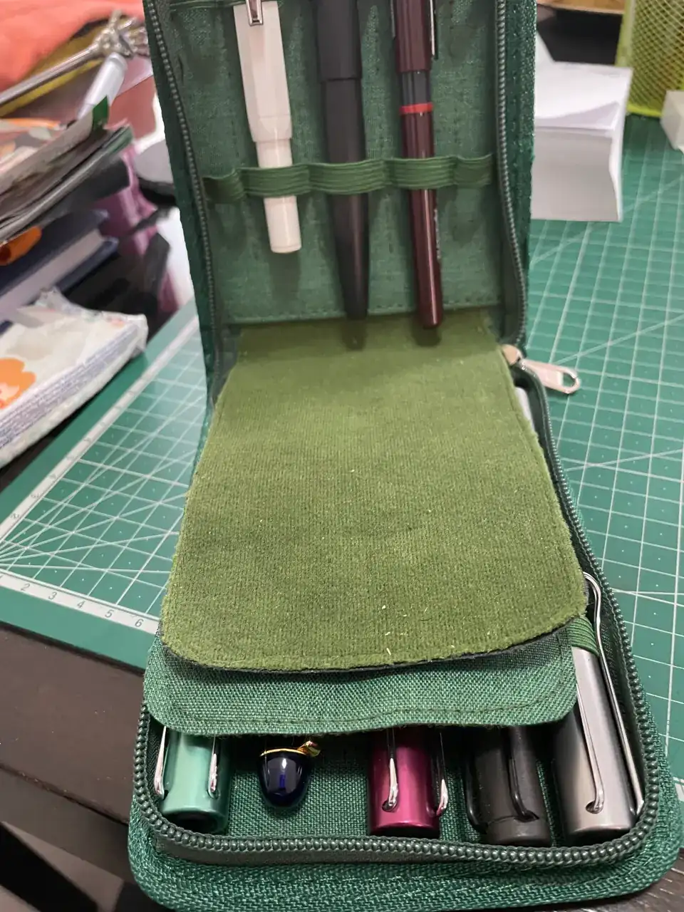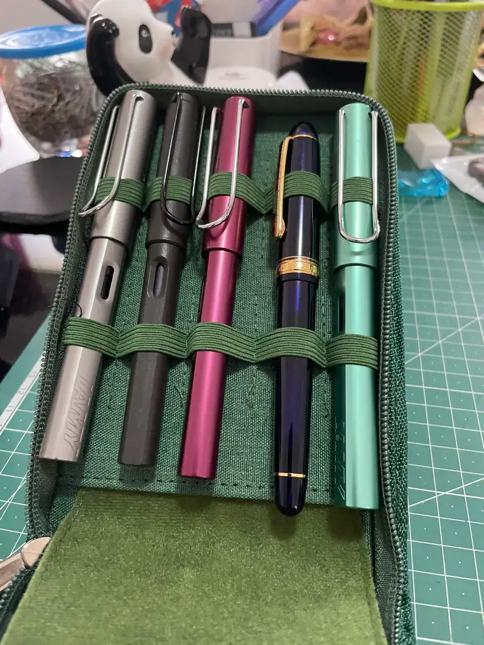 No me resulta nada ergonómico este sistema de sujeción de elásticos a pesar de ser el más estándar por eso llevo tiempo pensando en utilizar una simple caja de madera con metraquilato en la tapa superior y también el pen wrap de Pilot.