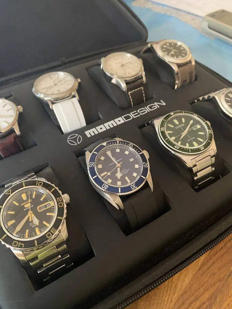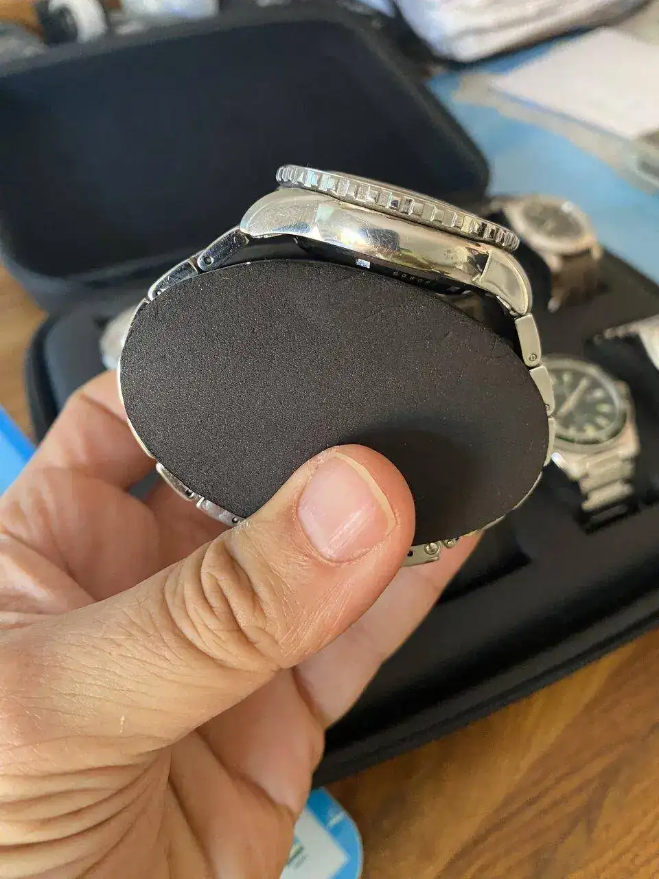 Lo ideal sería una caja con almohadillas similares a la medida de las muñecas, que no sé si se pueden encargar o no, amén de que pueden resultar bastante caras. Por ejemplo, mi muñeca es de 19,5 cm y plana. Lo ideal sería tener almohadillas de ese diámetro y forma para que las correas y brazaletes se adapten bien.
