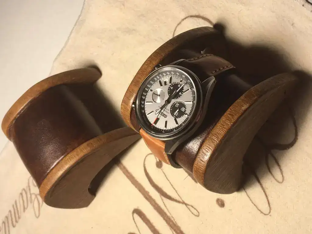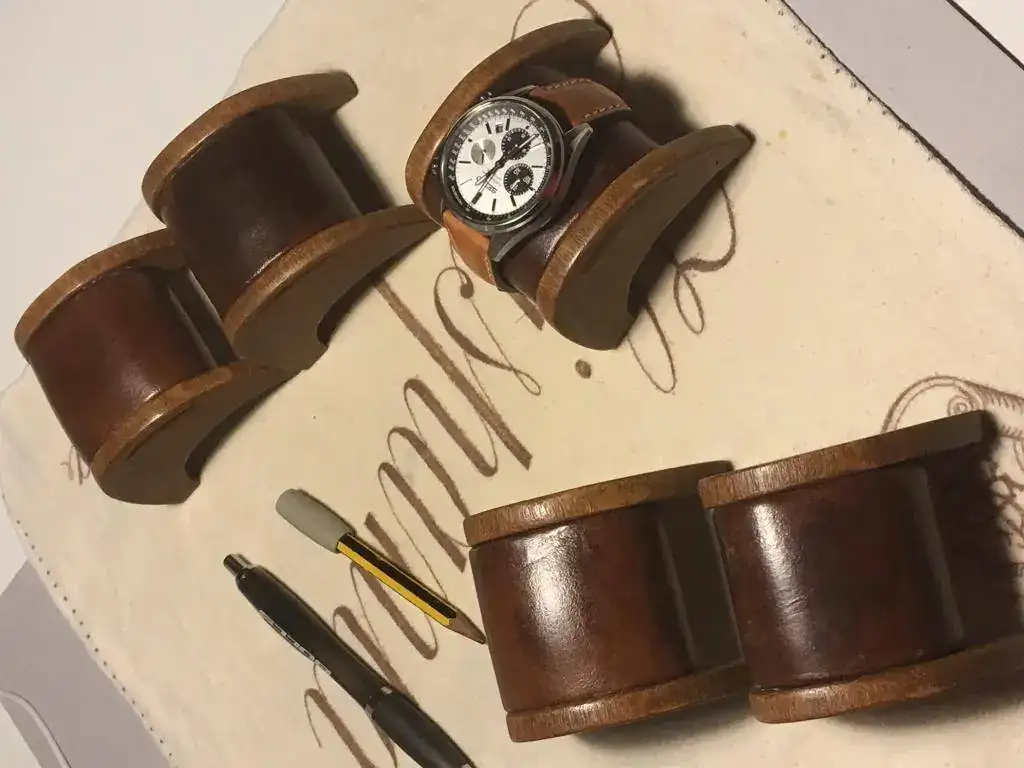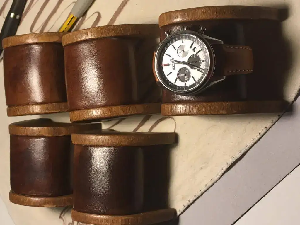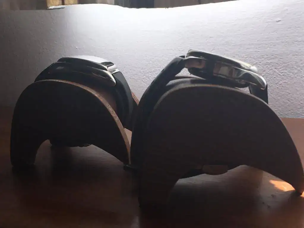 Las almohadillas están hechas de rollo de goma EVA a la medida de mi muñeca (esta medida es importante hacerla lo mas ajustada posible) ya que la almohadilla no tiene tanta flexibilidad como las de espuma ) y luego van forradas en piel de cazadora de ante que había por casa, ( hice 28 piezas ) Las maderas de los laterales ( a modo de patas de la almohadilla) hechas de un trozo de roble macizo de 8X7 cm y 80 cm de largo aproximadamente y hecho en rodajas ( si, como el lomo ) de un grosor de 7 mm. total salieron unas 70 piezas Incluyo una foto del trozo de roble cuando le estaba dando forma.