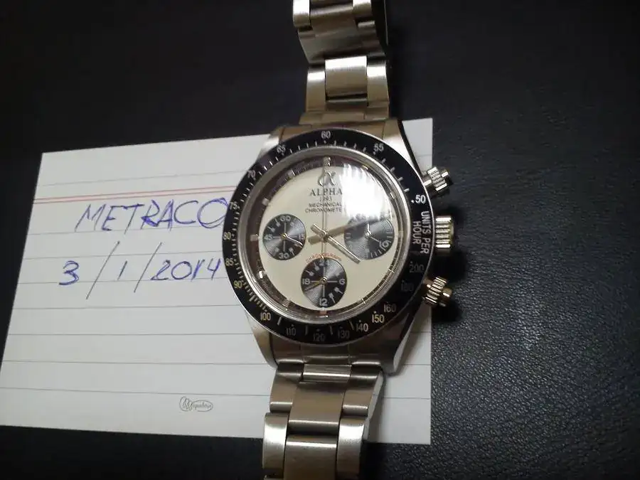 Hola a todos.vendo este crono precioso e impoluto.caja de 40mm de acero con fondo visto.calibre manual con rueda de pilares.cristal plexi abimbado e impoluto.armis hasta muñecas de 18cm.precio 132 mrw incluido.no cambios.gracias por mirar