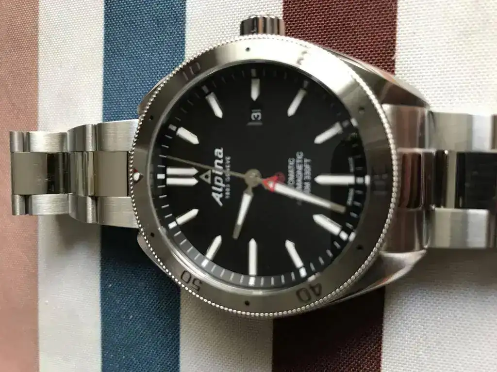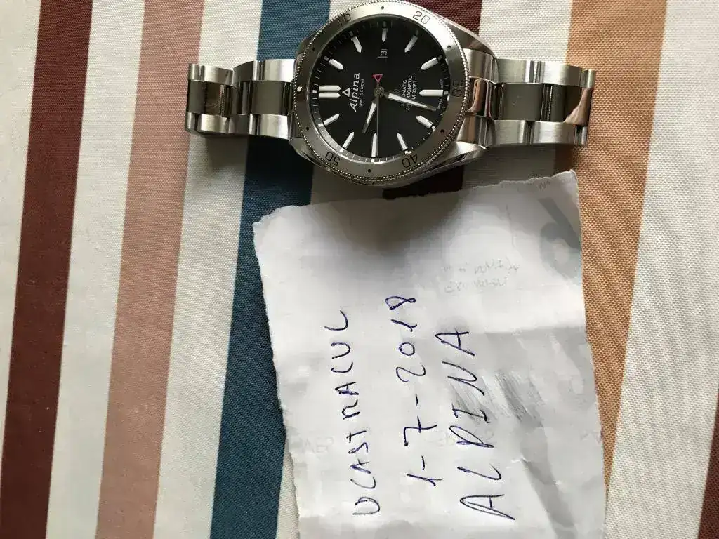 Buenos días a todos,saco para cambio este buen reloj.Alpina Alpiner 4,el reloj está usado sin marcas graves o profundas,el brazalete está ajustado a 18cm,tanto bisel como Cristal están impolutos.El reloj va con todo lo que trae de serie a excepción de la garantía.Para cambio no tengo nada en especial en mente...eso sí esfera oscura o negra y máximo de 45mm de diámetro.Marca: