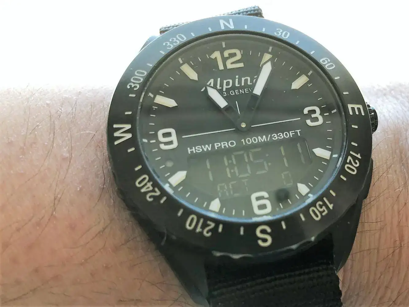Pongo a la venta mi Smartwatch Alpina AlpinerX . El reloj tiene multitud de funciones: altímetro, barómetro, termómetro, cronómetro, detector de factor UV del sol, conexion bluetooth con el móvil para notificaciones etc, funciona perfectamente con Android y con Apple. Todo un smartwatch pero con la estética de un reloj analógico-digital suizo de calidad. Esta en un perfecto estado, el reloj es de Septiembre de 2018 con lo que está en garantía y además en el verano pasado se le cambión la pila y se le hizo revisión. Incluyo la correa Hirsch en perfecto estado que le da un aspecto militar, solo la correa está valorada en 80 euros. Se incluye la correa original con muy poco uso