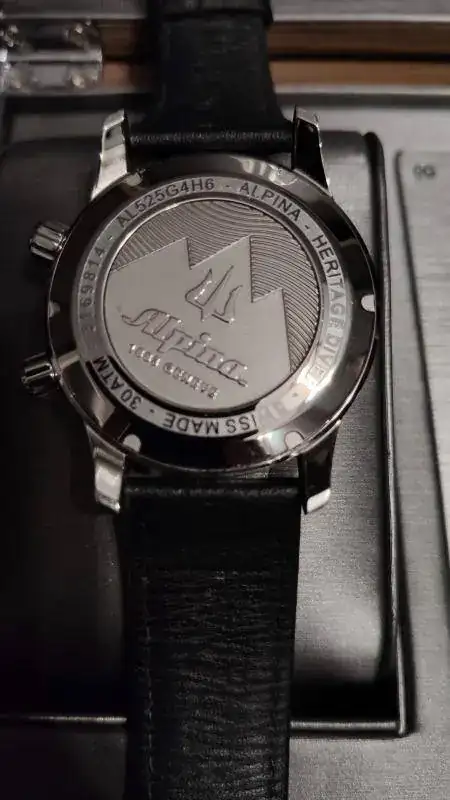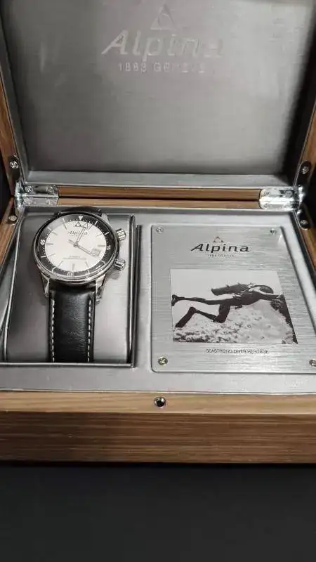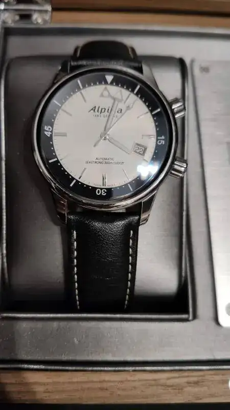 Pongo a la venta este ALPINA SEASTRONG DIVER HERITAGE, Uno de los iconos de la marca Alpina. No hay mucho que explicar que no sepáis, solo reseñar que tiene una especie de rayita en una de las asas que he intentado sacar en las fotografías, es por ello que ajusto el precio del reloj. Otra mención es la correa, limpiada y aseada pero con uso. Aún le queda recorrido pero yo optaría por cambiarla (eso lo dejo al futuro dueño).