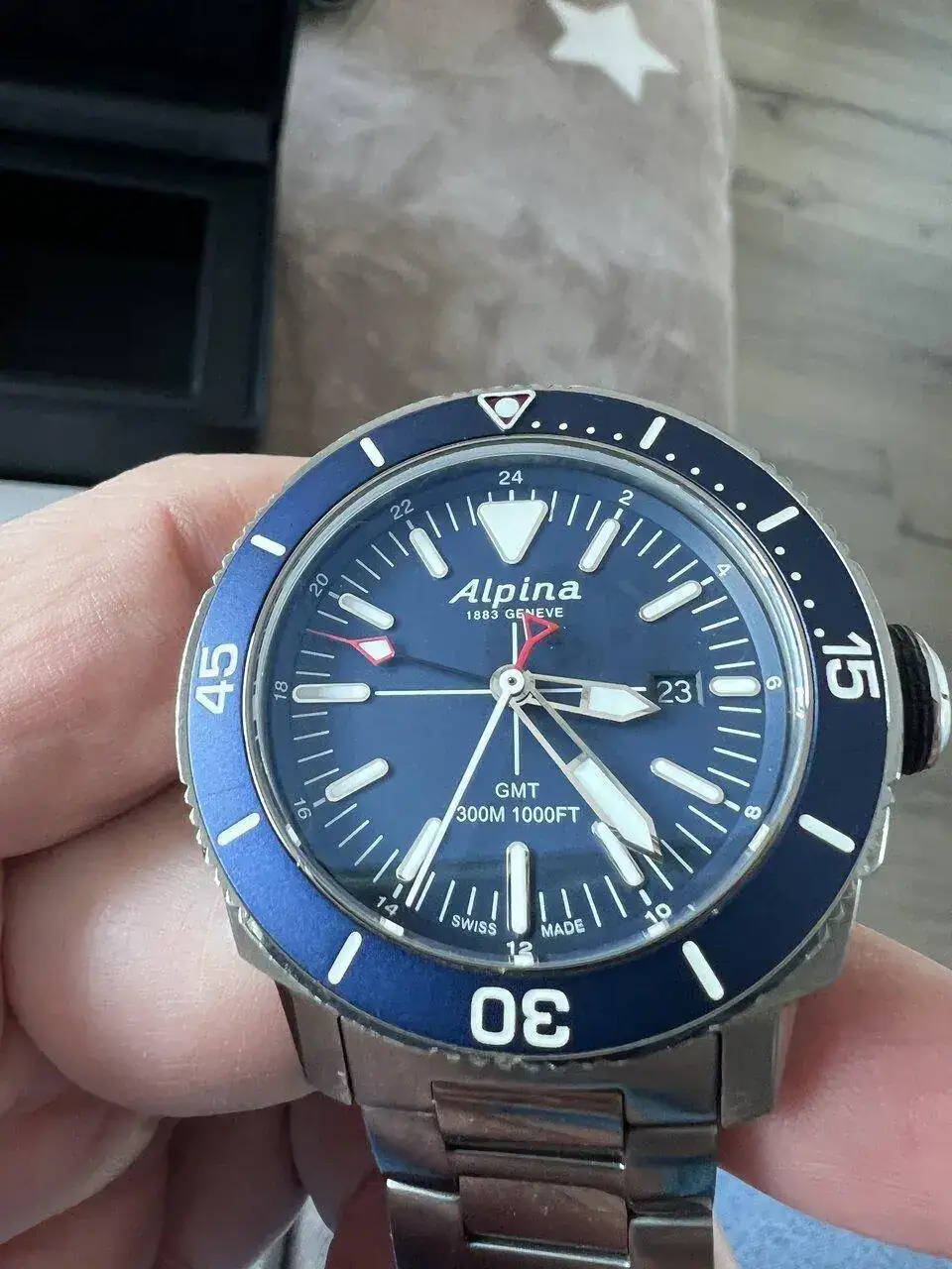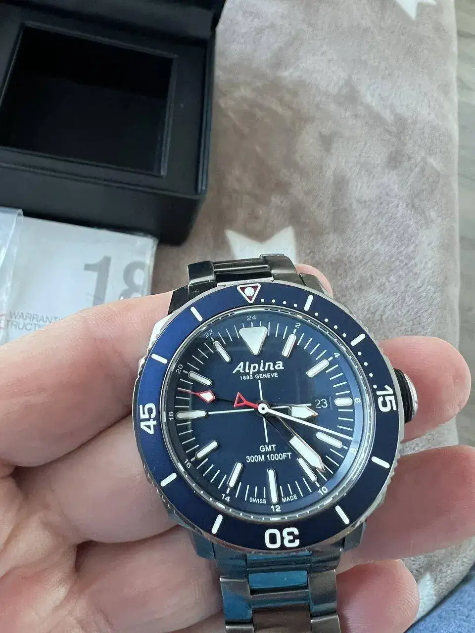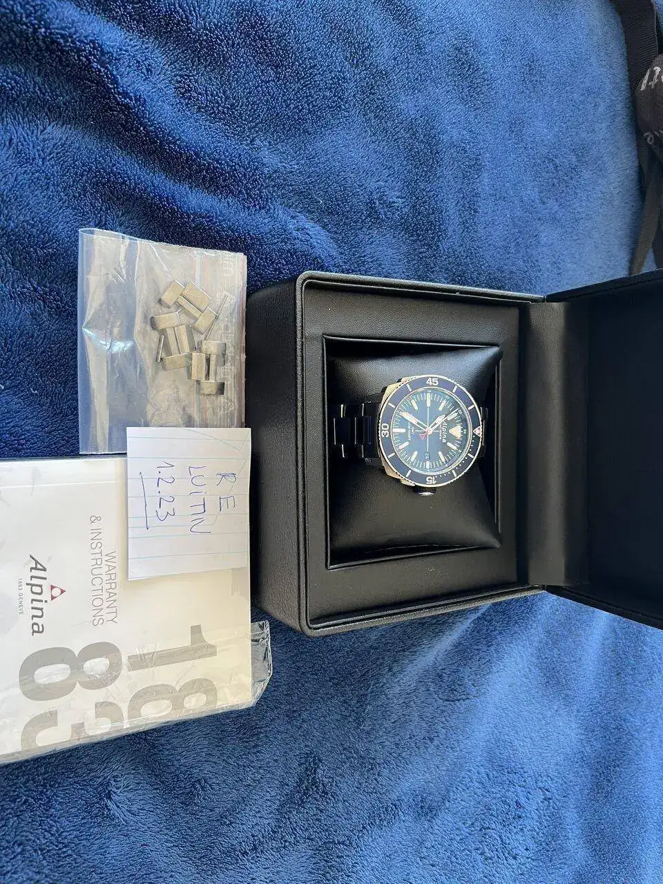 Saco para venta este precioso Alpina Seastrong GMT, en excelente estado, nada a destacar. Modelo de acero con su armis original, con su caja y eslabones sobrantes, manual de instrucciones; no tengo la tarjeta de garantía, pero tengo la factura de compra de Cressus. Es un reloj con unos acabados espectaculares. Acero de alta calidad, zafiro con doble capa de AR etc. Su pvp es de 800€ yo lo saco a venta sin cambios ni Relojes a cuenta por 280 €