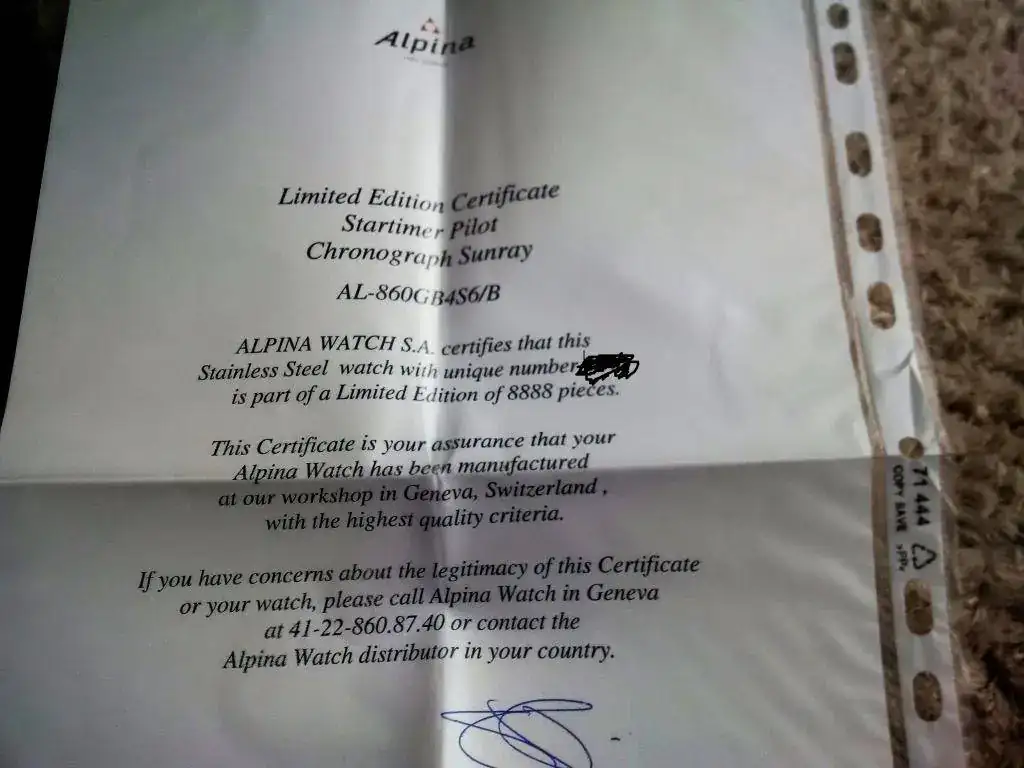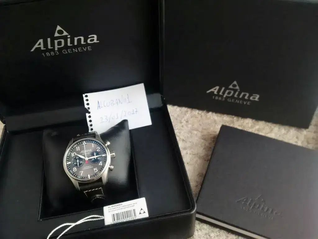El reloj se entrega con sus cajas (externa e interna en perfecto estado), certificado de autenticidad, libro de instrucciones, tarjeta de garantía sin sellar (como digo la garantía la cubre Amazon), y de regalo una correa tipo nasa con el logo de Alpina.
