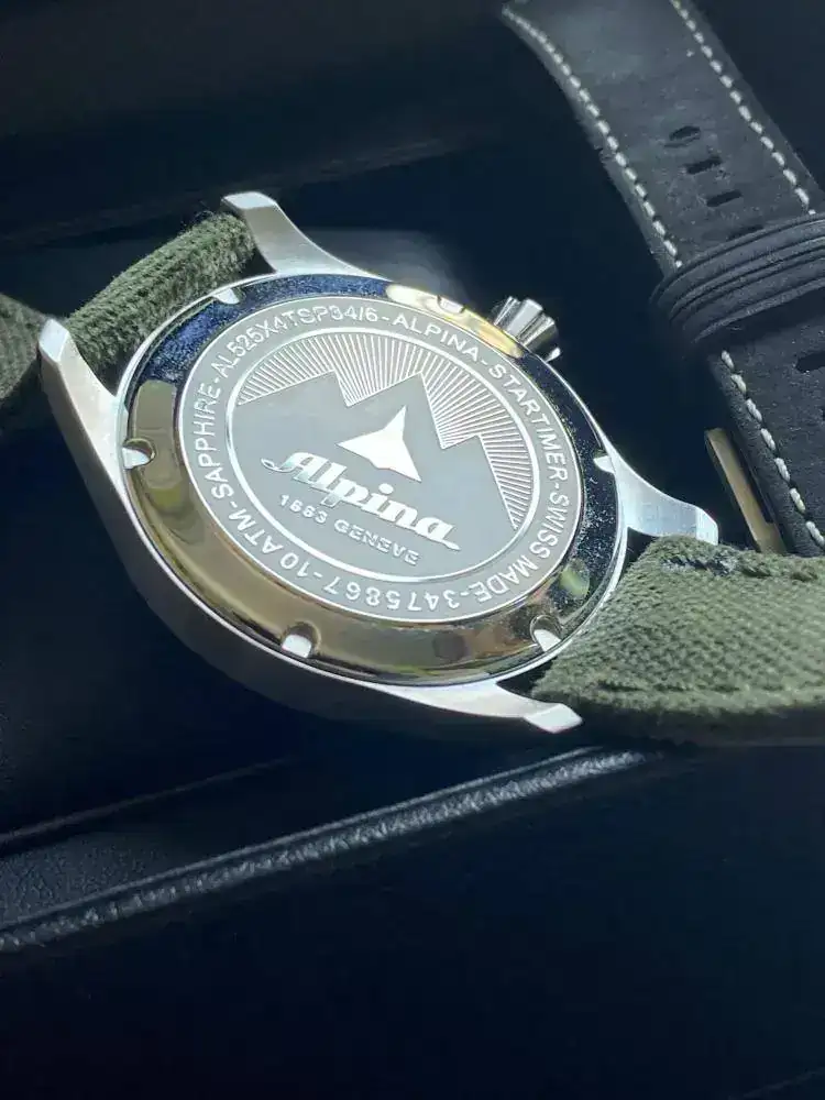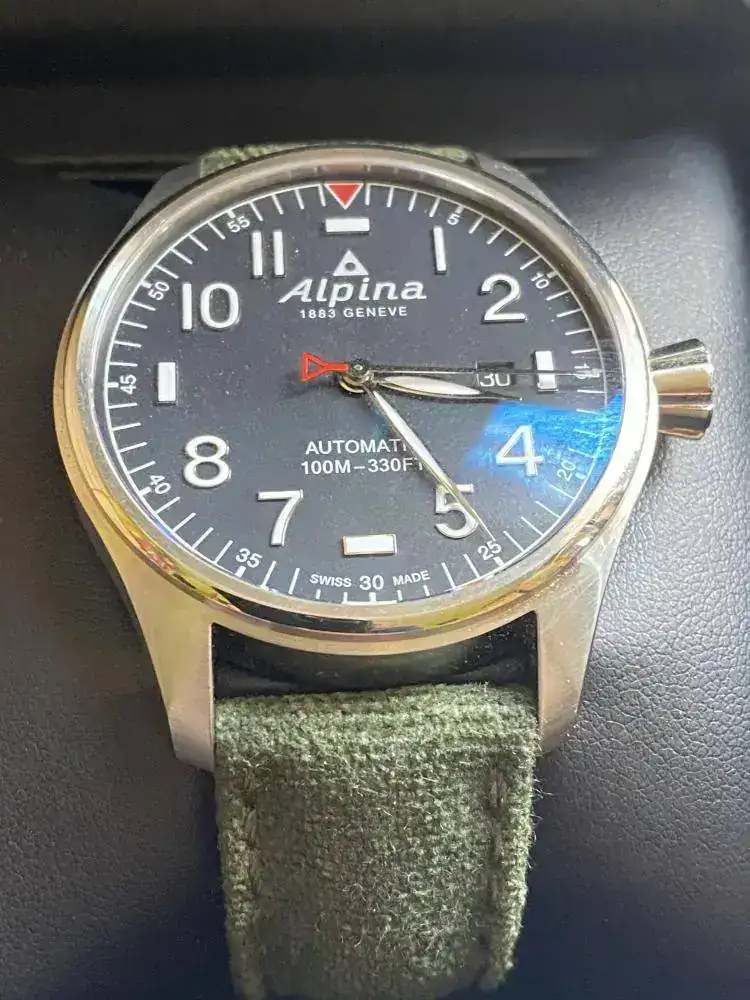 Brazalete: Original Alpina en azul grisaceo sin estrenar y estupenda correa Canvas con ardillón estilo Panerai