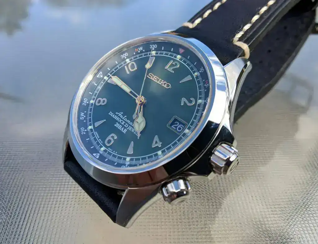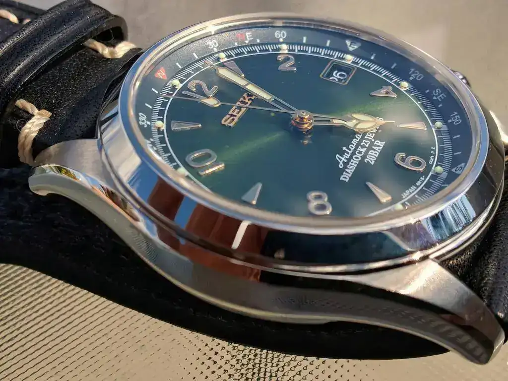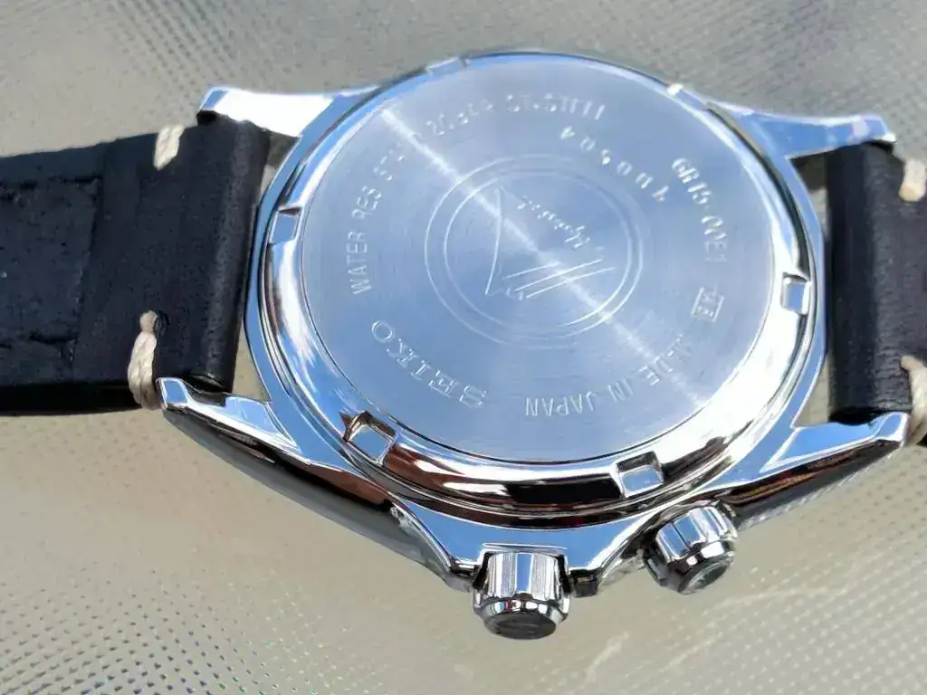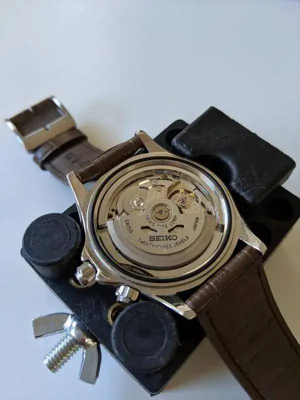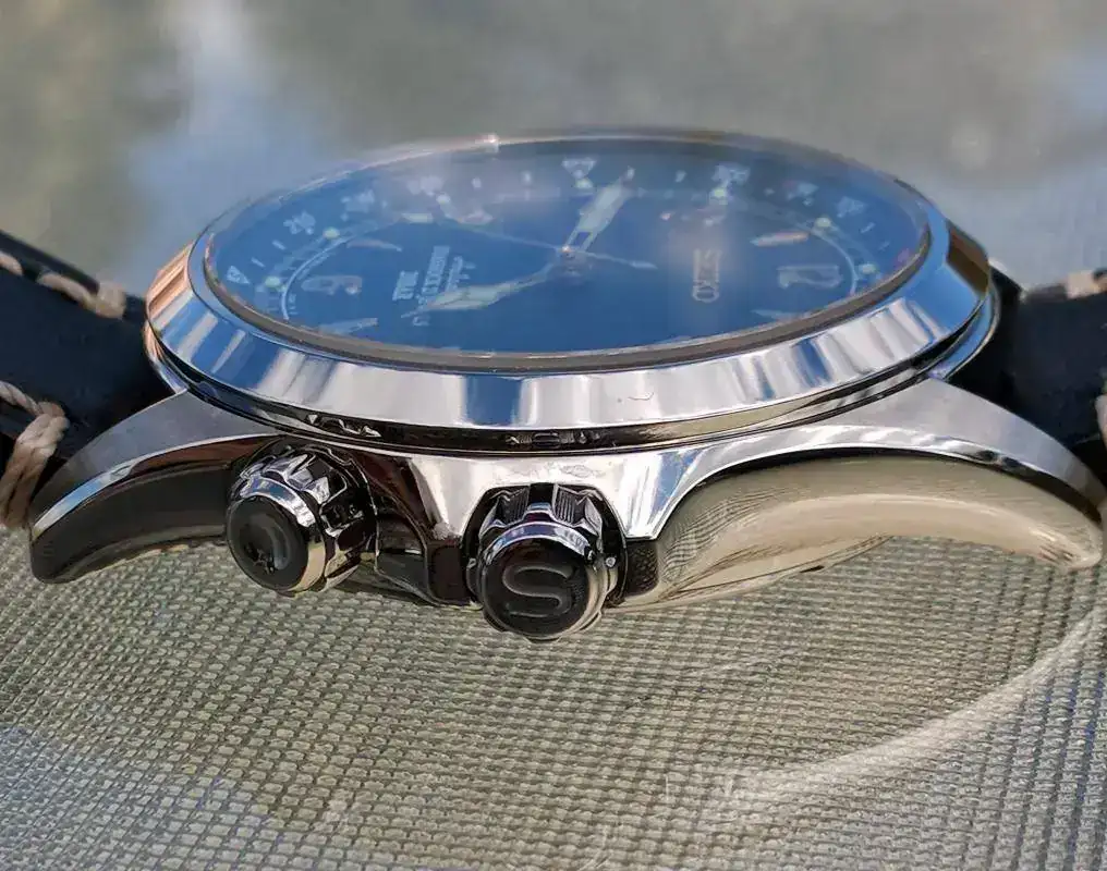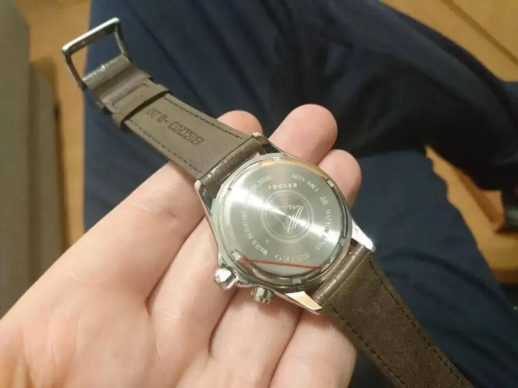 Segundo, el logo de Seiko está ligeramente redondeado, por las fotos que he visto en la red parece que debería ser más plano y con aristas afiladas, como son todos los logos de mis otros Seiko, adjunto foto.