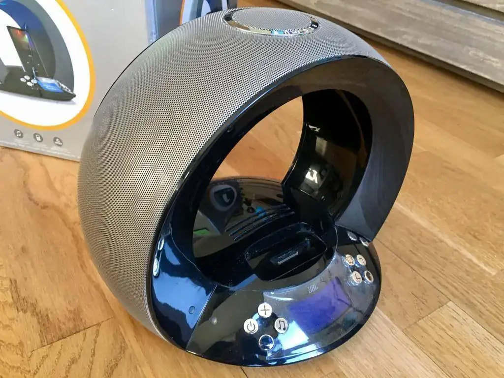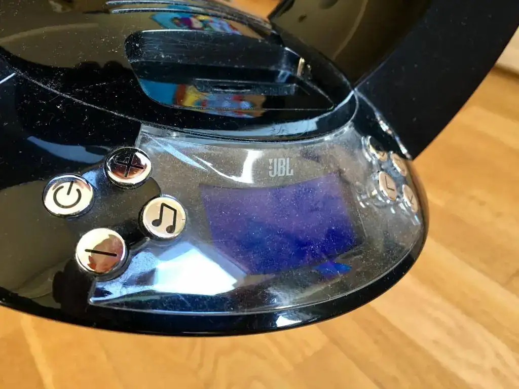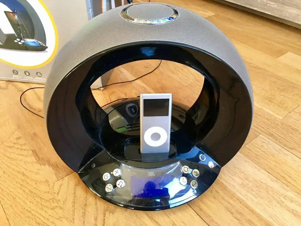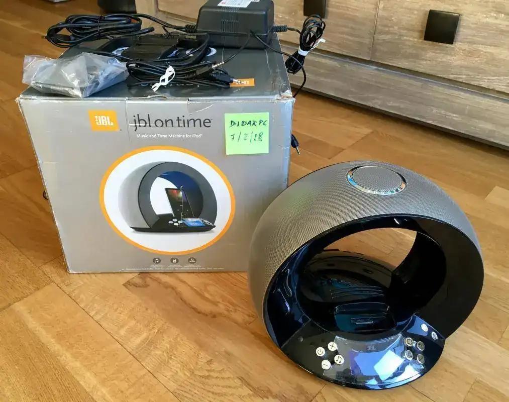 Saco otro 'cacharro' que no le doy uso a la palestra. Se trata de un altavoz JBL con un sonido bastante bueno. Viene en su caja y todos sus accesorios que venían de origen. Con base para iPod e iPhone con conector antigüo. A destacar que le entró polvo entre la pantalla y el cristal que lo recubre. Se incluye un iPod de 4Gb también funcionando perfectamente para sacarle provecho.