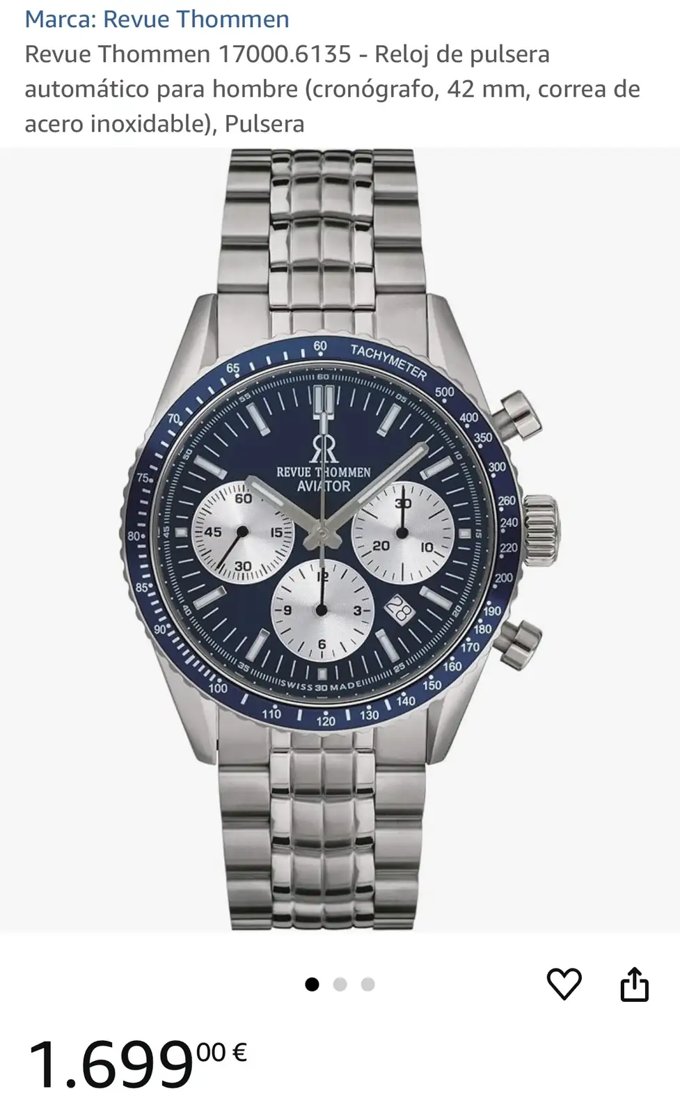 Yo tuve un Louis Erard, del que no recuerdo el modelo, pero era muy similar al Speedy. Caja de 43 mm, cristal zafiro y crono automático. Me arrepentí mucho de haberlo vendido, por lo que te lo puedo recomendar ampliamente, para que puedas buscar el modelo con la marca de reloj. Saludos.