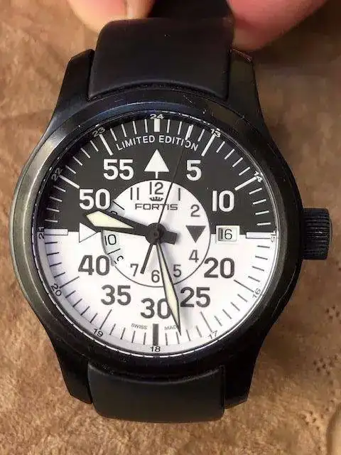 ¿Alguien sabe de algún reloj de aviador la mitad negro y la mitad blanco como este?