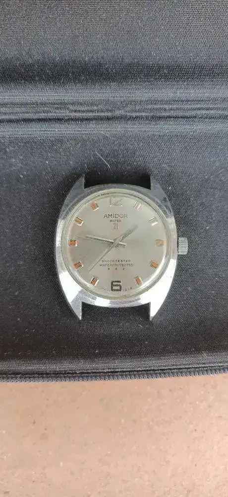 Buenas compañeros, os tengo una pregunta para los gurú de este foro, dando una vuelta con mi querida madre en un mercadillo de antigüedades encontré este reloj que me llamó la atención, se trata de un AMIDOR Super 21, es un reloj de remonte manual, antimagnetico, shock resistant, waterprotected, y la tapa es roscada de acero inoxidable, corona a presión, al menos es lo que dicen las leyendas que tiene escritas, he estado buscando información u no encuentro nada, la única reseña que creo que es Alemán de los años 30 o 40, no traía correa y me gustaría ponerle alguna, tiene un diámetro de 35 o 36mm y entre asas 17 o 18.. si alguno sabe que calibre monta, procedencia, fabricante, y su valor aproximado le estaré agradecido