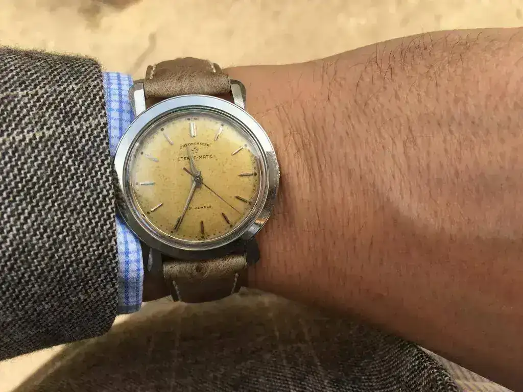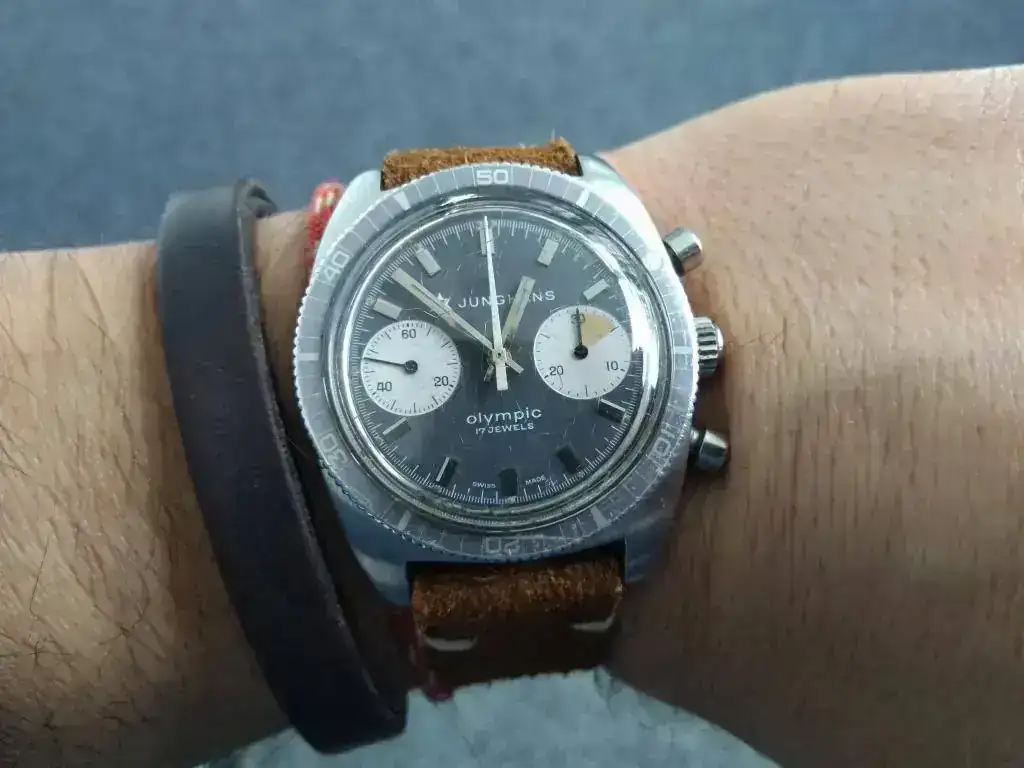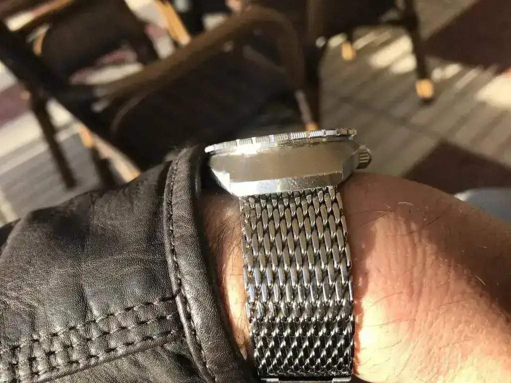 Adquirido a un estupendo forero , aconsejado por osquitar y con un empujón de mi simpático OSOBELIX , os presento el reloj de mi año, del 71; cumpliendo requisitos de marca, tamaño, material claridad de lectura ,original , en fin.....que me tiene loco. Reconozco que el flightmaster también , pero......se cruzó este , menos agujas para un presbítico miope astigmático que no estigmatico.