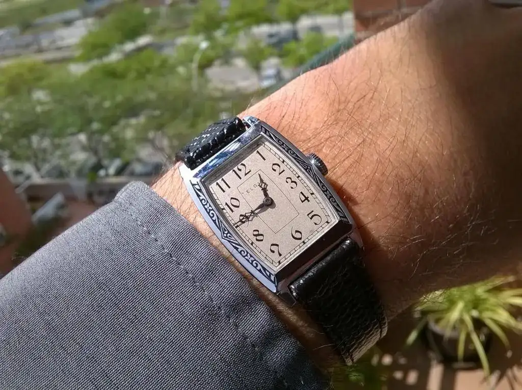 Es NOS, sí, lo he estrenado yo, pero no es NOS en el sentido puro del término: No es un reloj que durmió en una relojería desde antes de la guerra. Simplemente aparecieron la esfera y la caja (de Star Watch Case Co.), que no se habían montado nunca con máquina, y se ensamblaron con la máquina correspondiente. Gracias a que hay publicidad de la época se pudieron poner las agujas exactas del modelo.