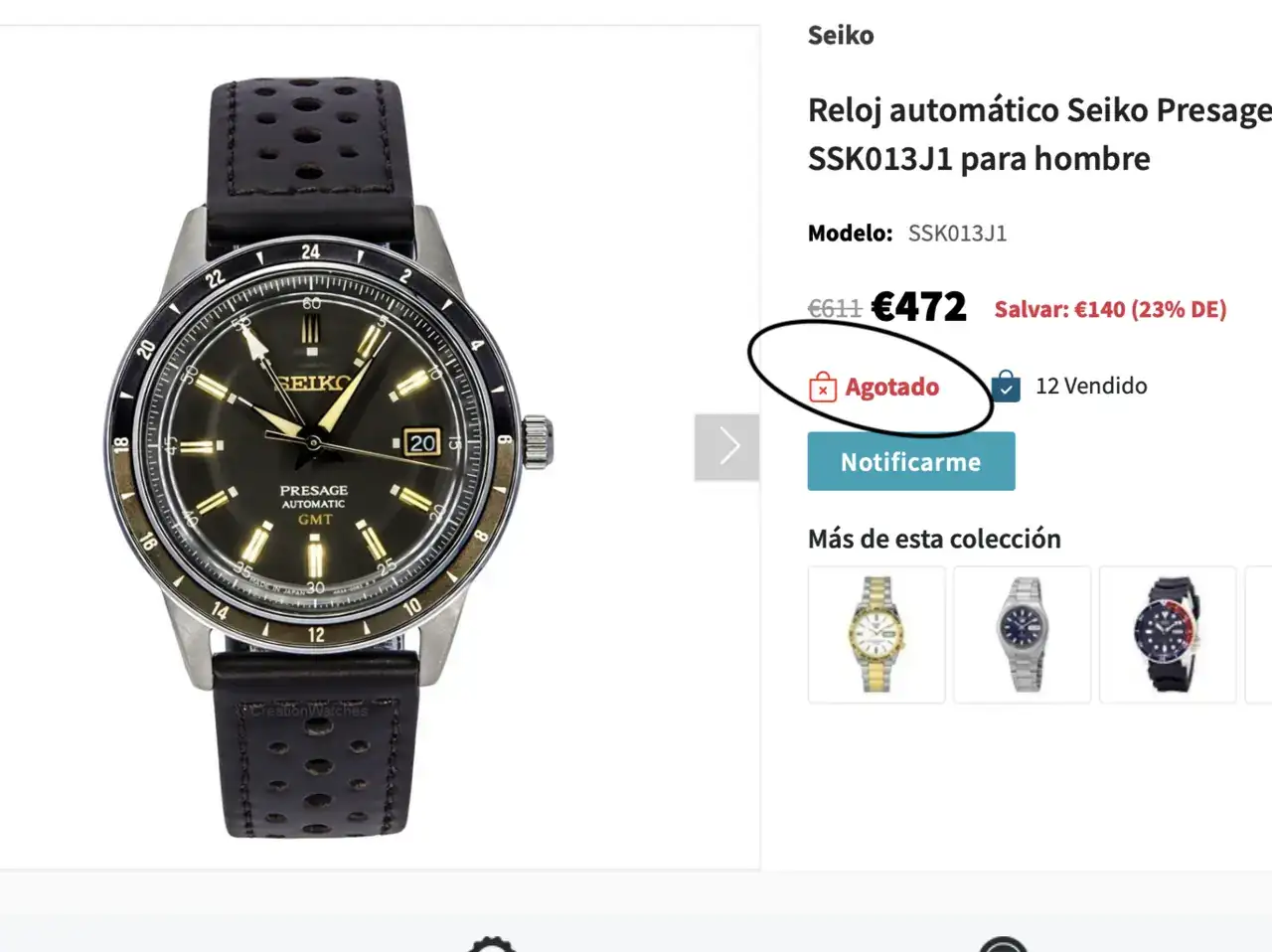 Gracias por la búsqueda Abde, el precio es brutal, casi me da un pasmo al verlo, pero está agotado...Pues entonces la opción de hacer doblete no es tanta locura... Y he visto un estupendo precio para el Seiko aprovechando el fin de año en Creationwatches